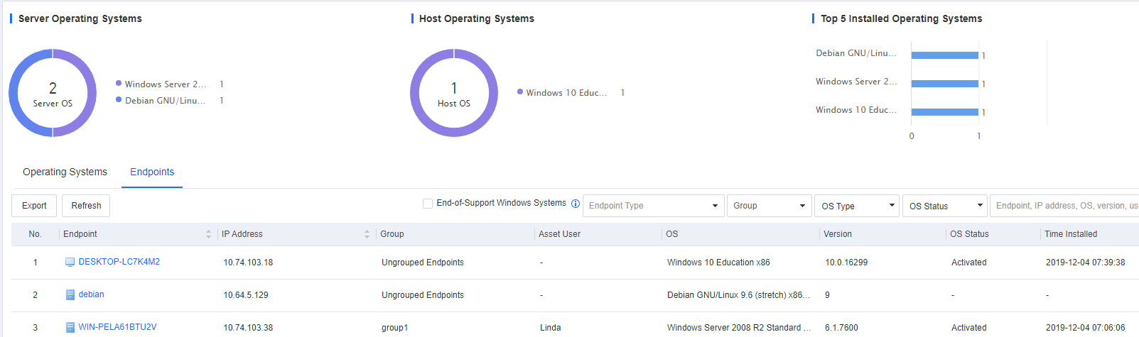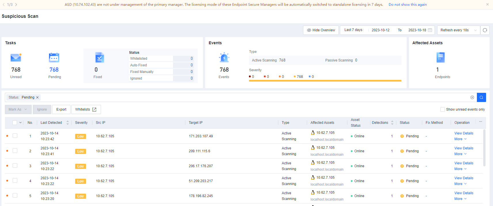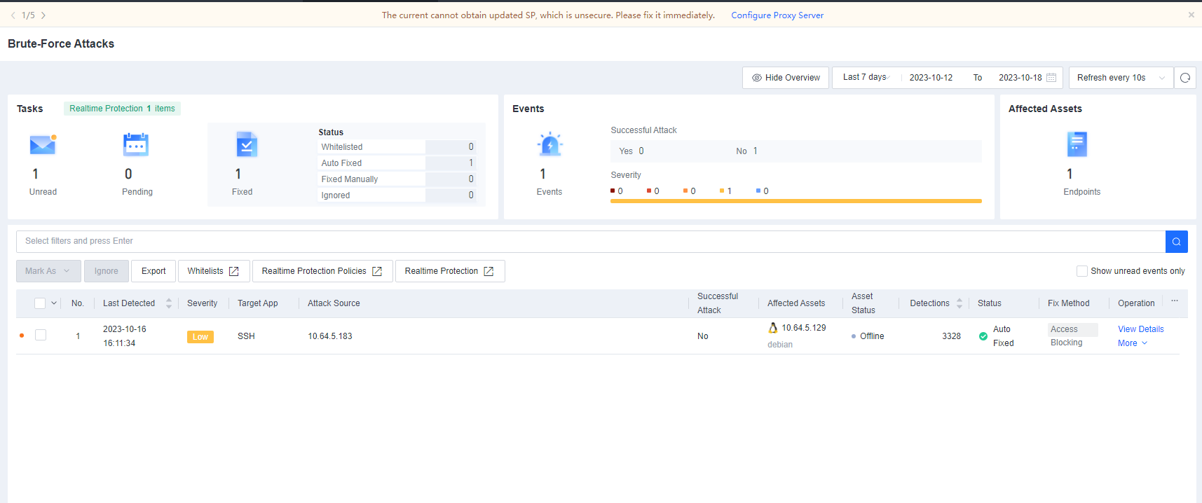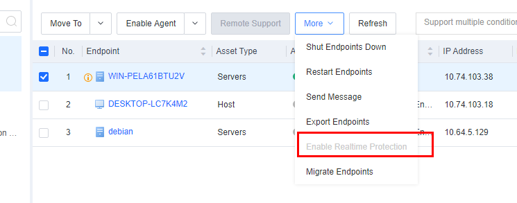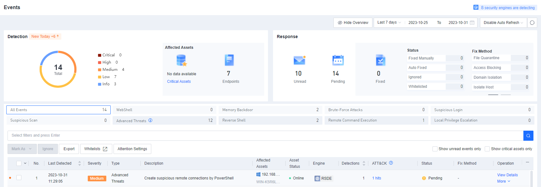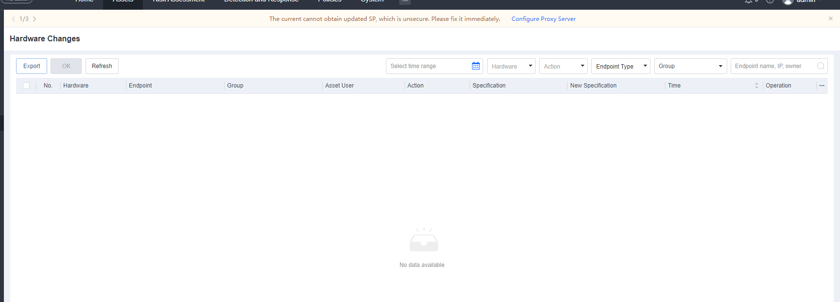| Detection and Response | Target Assets | / | Endpoint isolation | An isolated endpoint cannot access any other networks. If a server is isolated, your business may be affected. | High | Go to Detection and Response > Target Assets > Isolated, and remove the endpoint from isolation. |