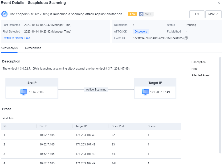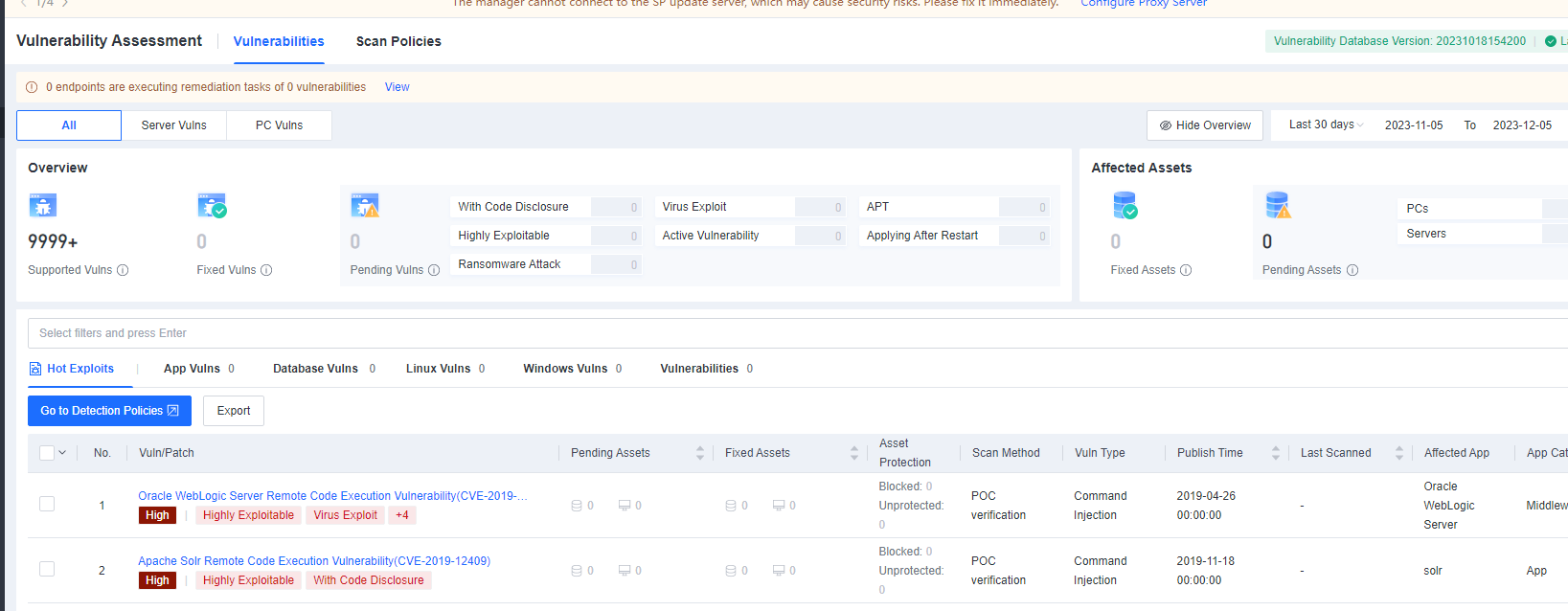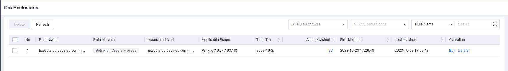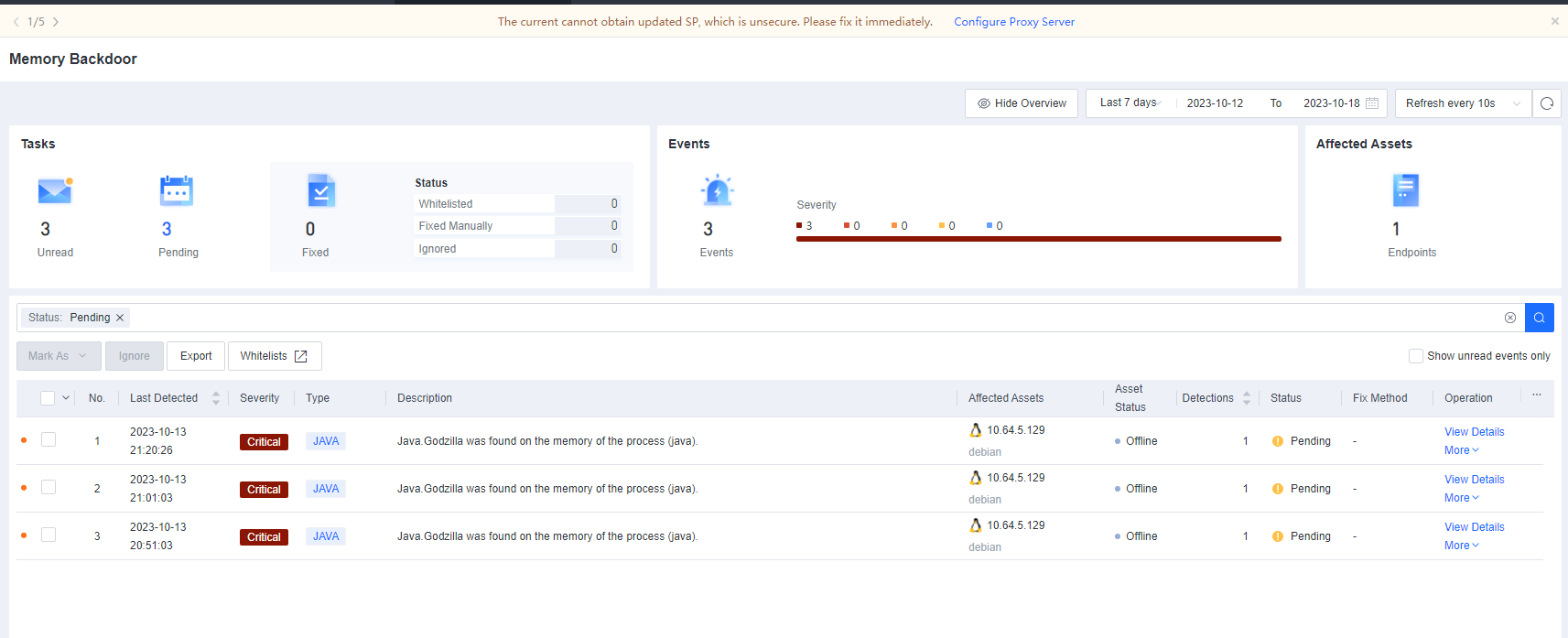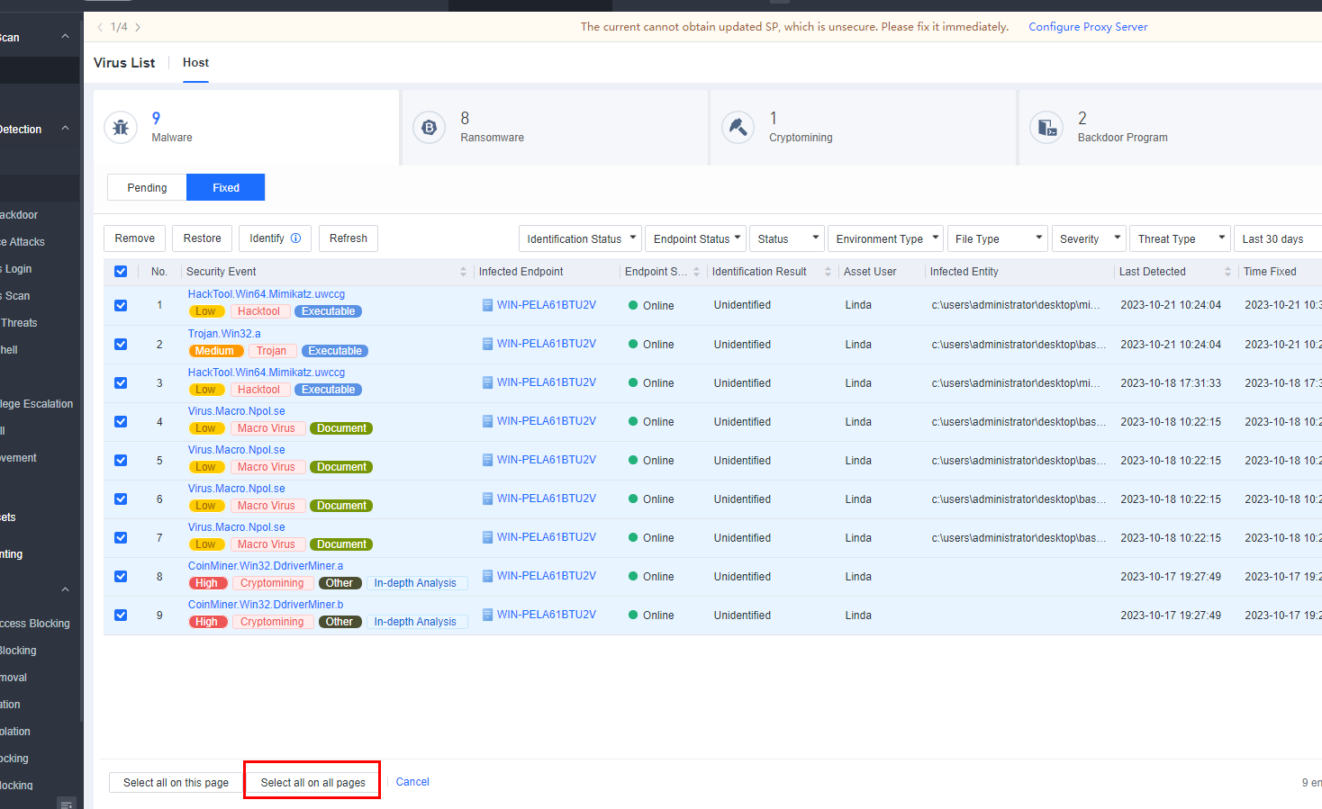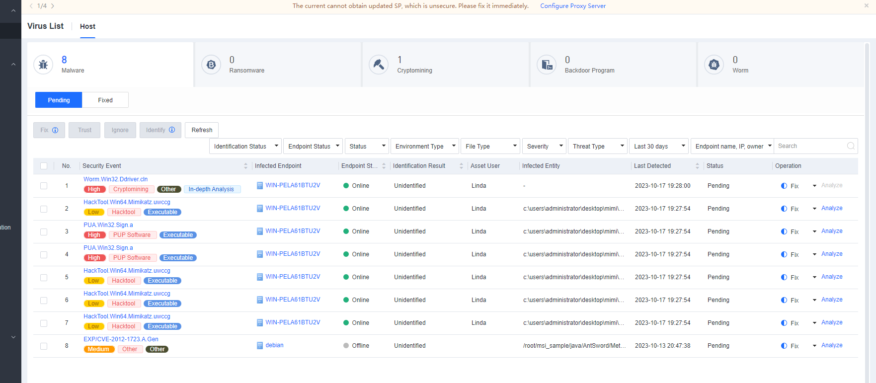| Detection and Response | Target Assets | / | Endpoint isolation | An isolated endpoint cannot access any other networks. If a server is isolated, your business may be affected. | High | Go to Detection and Response > Target Assets > Isolated, and remove the endpoint from isolation. |