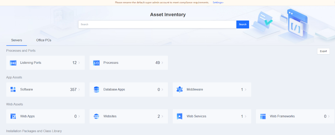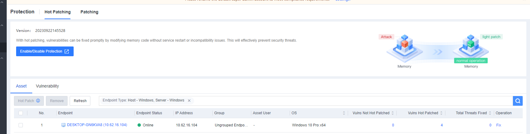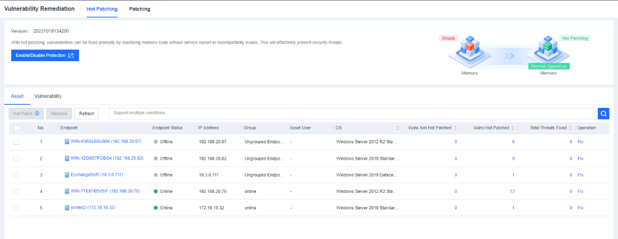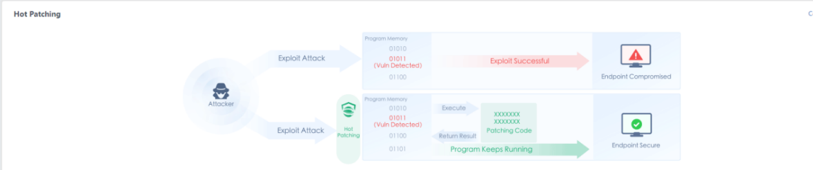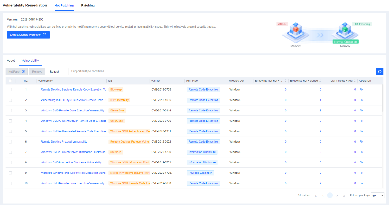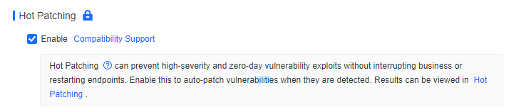 Defense: Provides defense capabilities, including secondary authentication, micro-segmentation, hot patching, virtual patching, vulnerability remediation, and automatic fix of viruses, ransomware, web shells, and brute-force attacks.