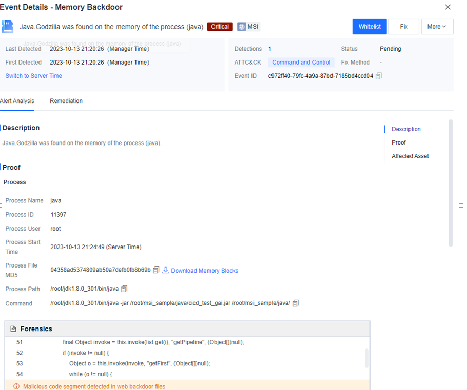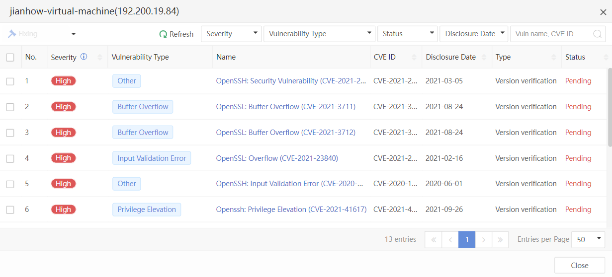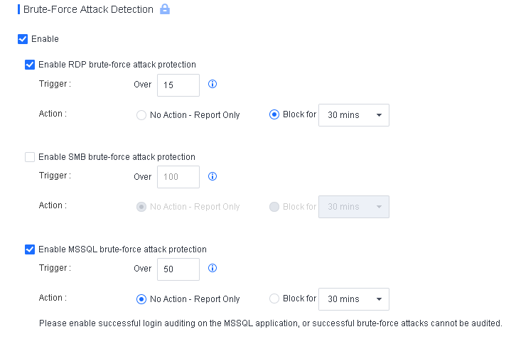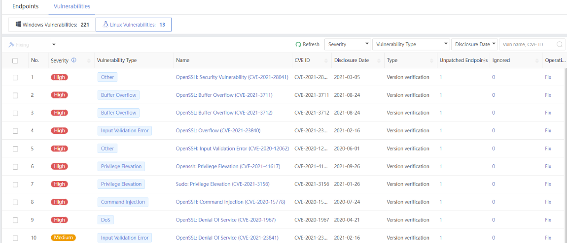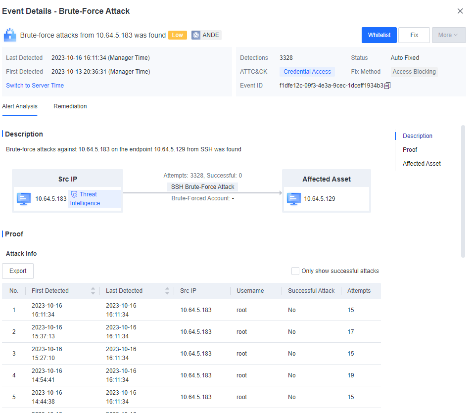 Defense: Provides defense capabilities, including secondary authentication, micro-segmentation, hot patching, virtual patching, vulnerability remediation, and automatic fix of viruses, ransomware, web shells, and brute-force attacks.