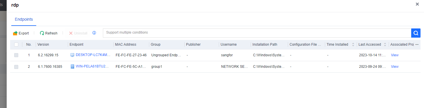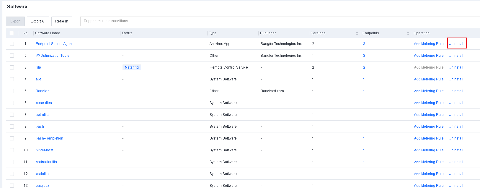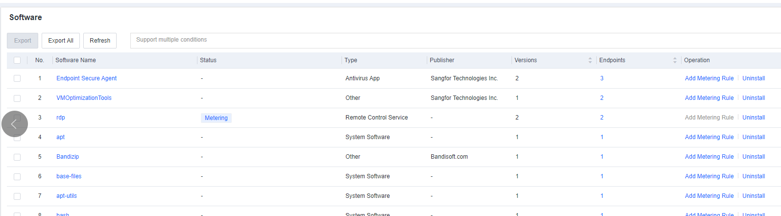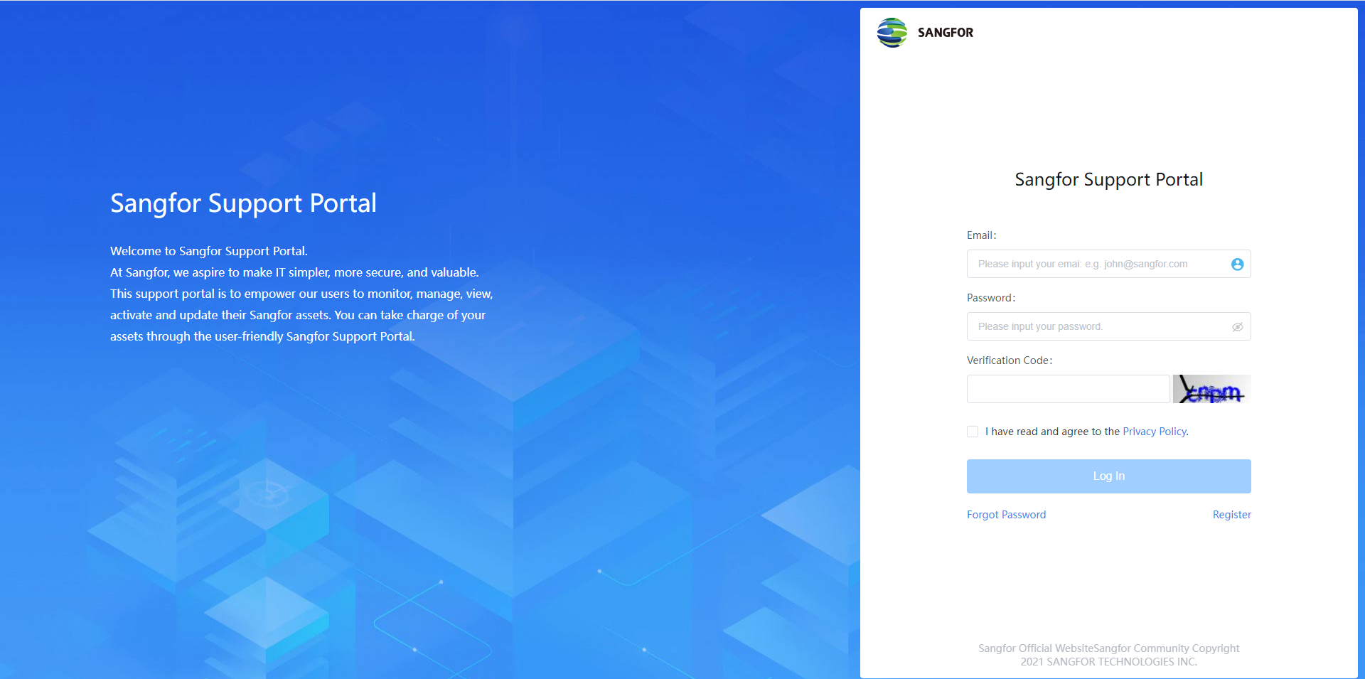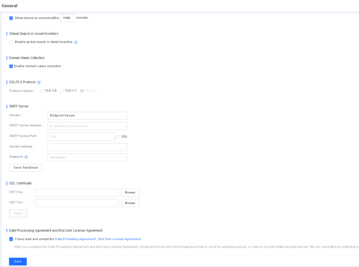 | Endpoint Secure Manager | Cloud server | Terms of Use and Privacy Policy | https://clt.sangfor.com |