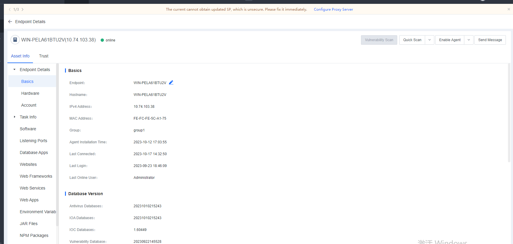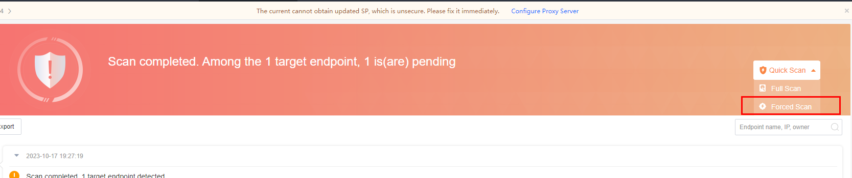 Solution: - Ensure you have configured the correct IP address, gateway, and DNS settings for Endpoint Secure Manager, and your endpoint can access download.sangfor.com.