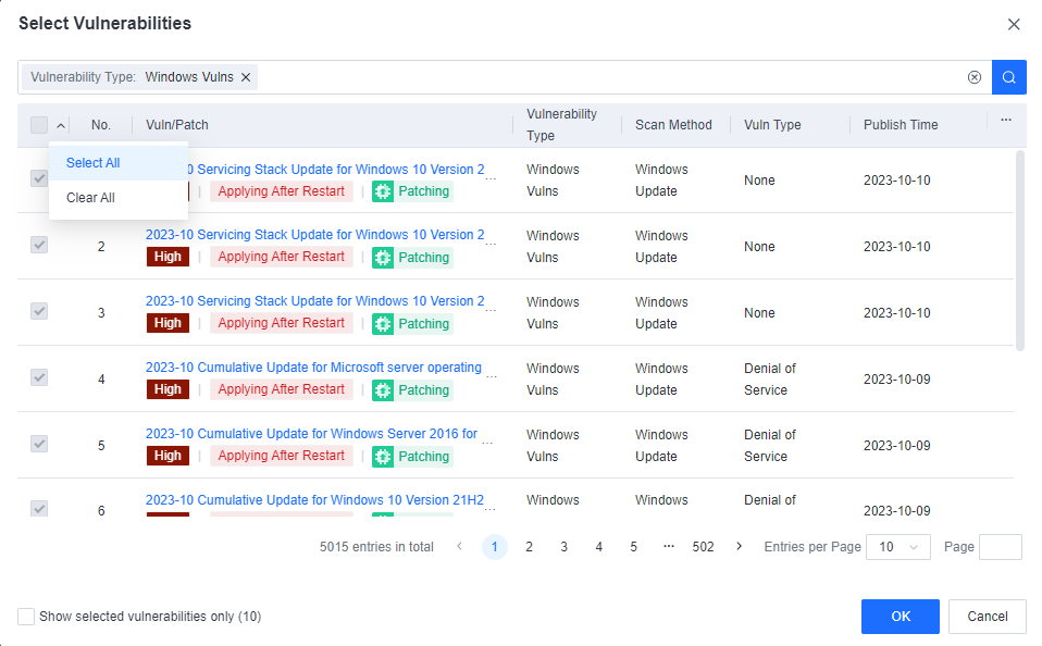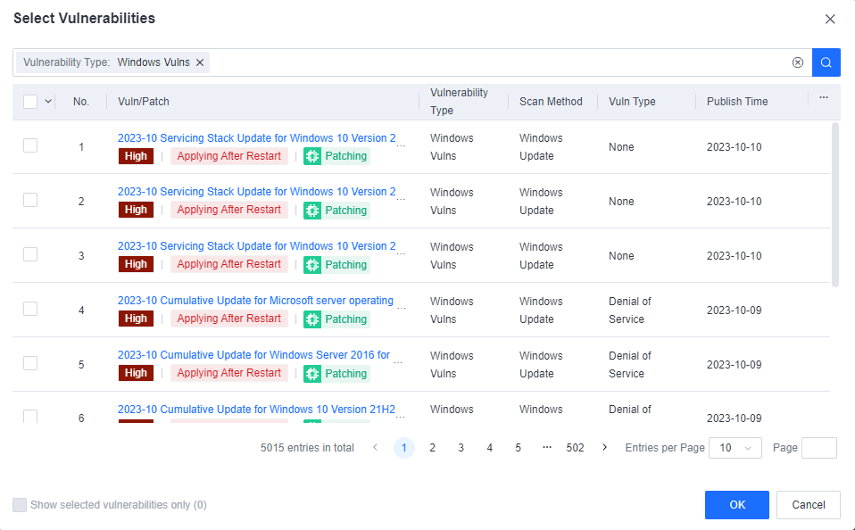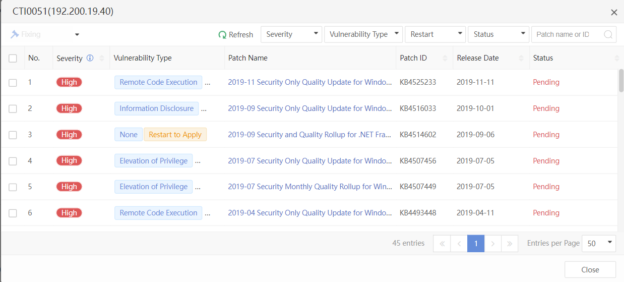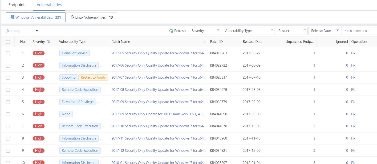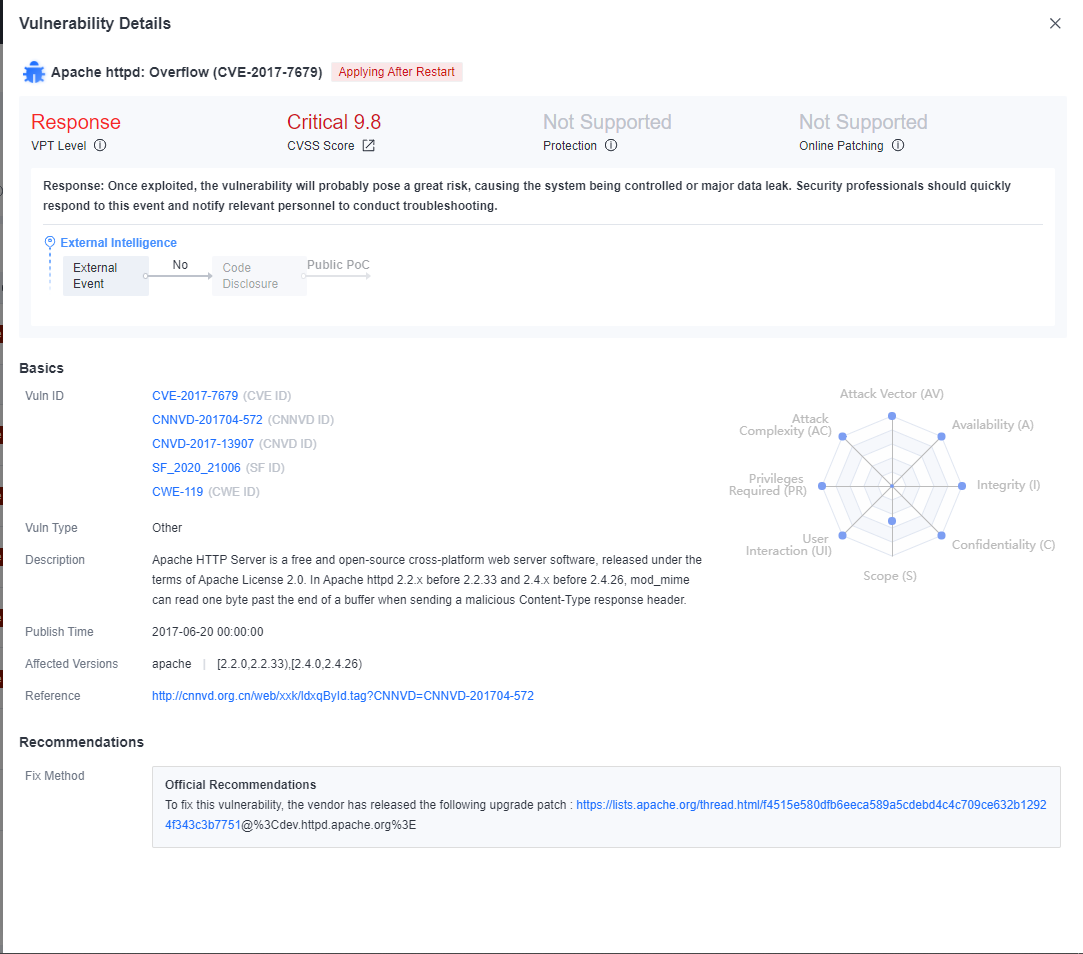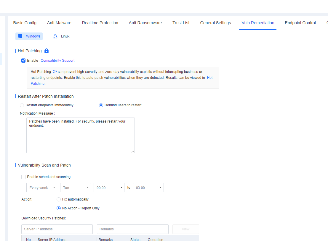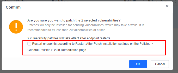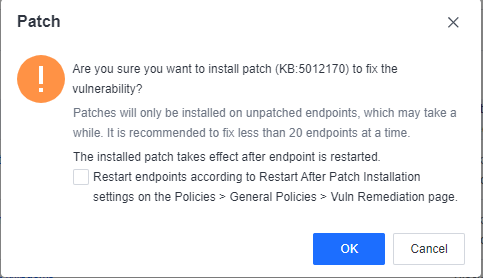 | Risk Assessment | Vulnerability Remediation | Patching | Some vulnerability fixes require a system restart to take effect. Your business will be interrupted if you specify to restart the server automatically after fixing a vulnerability. | Your business is interrupted due to a server restart. | High | We recommend that you do not specify to automatically restart the server after fixing a vulnerability. Instead, you can manually restart the server when the restart causes a minimal business impact. |