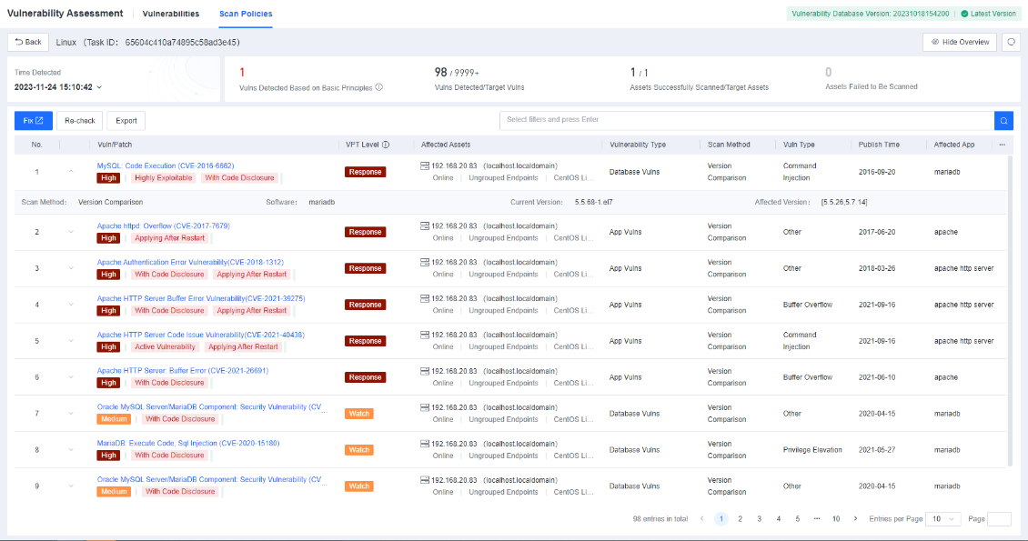 - Download the vulnerability database or patch package and verify its MD5 value.