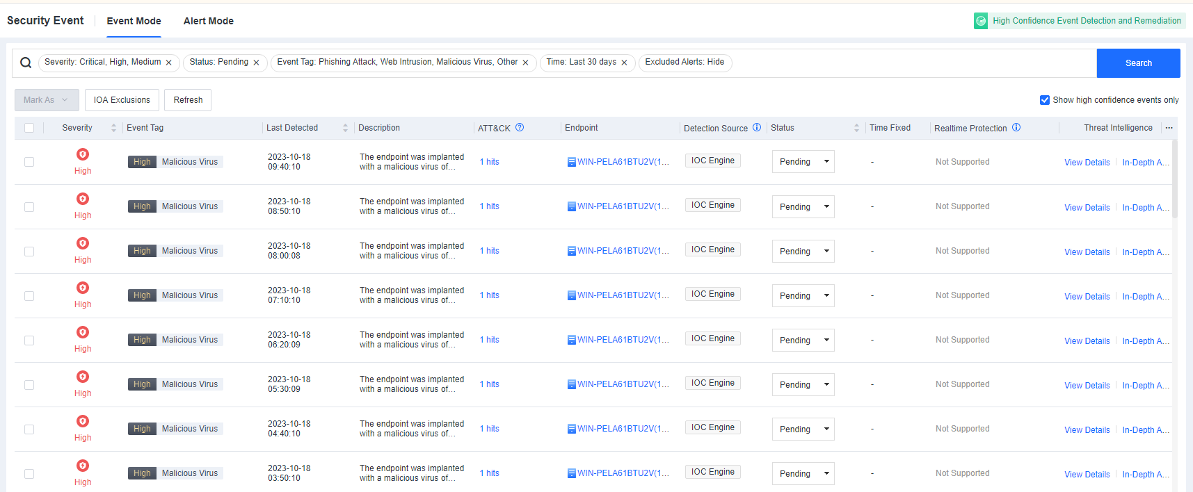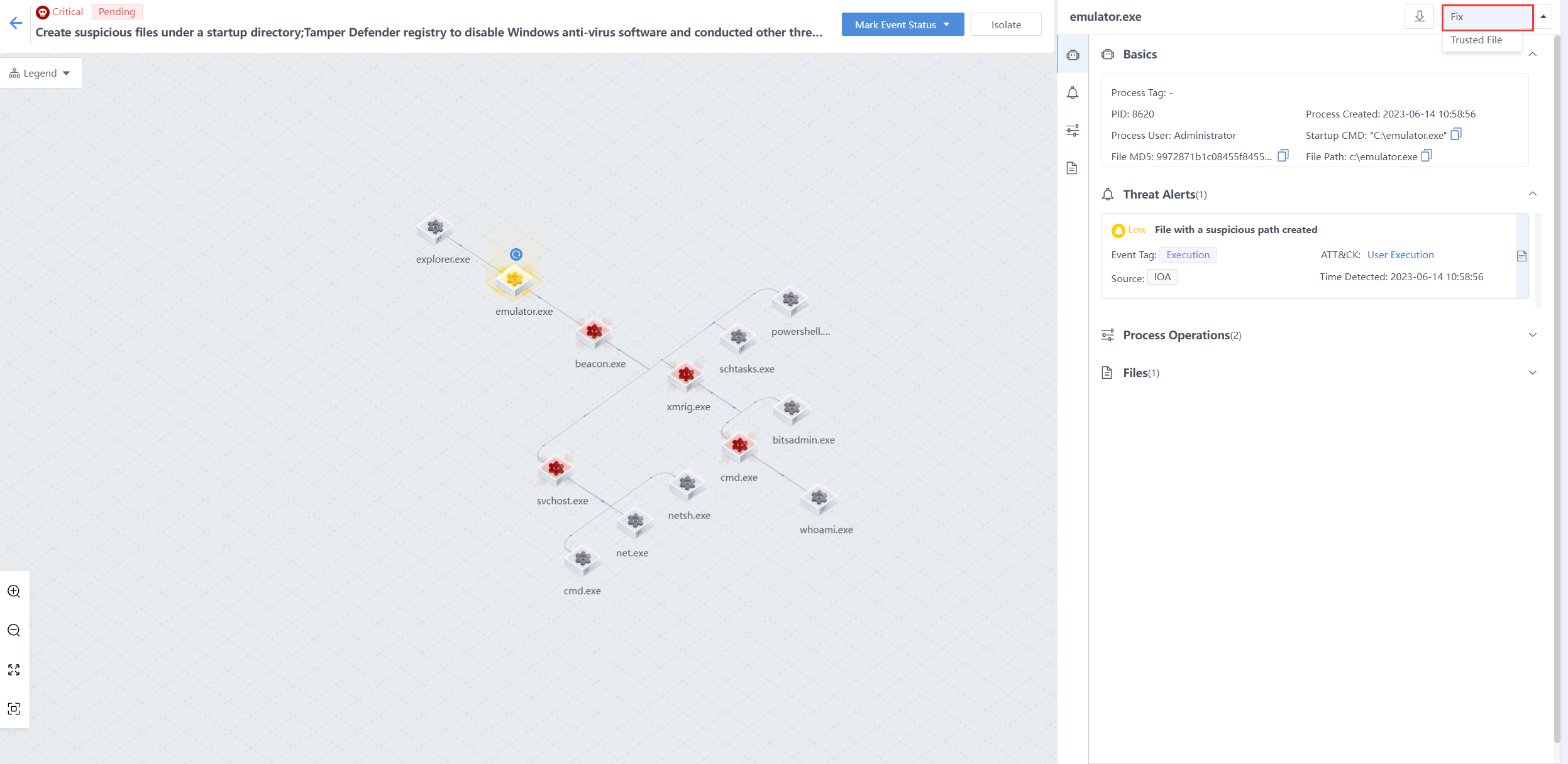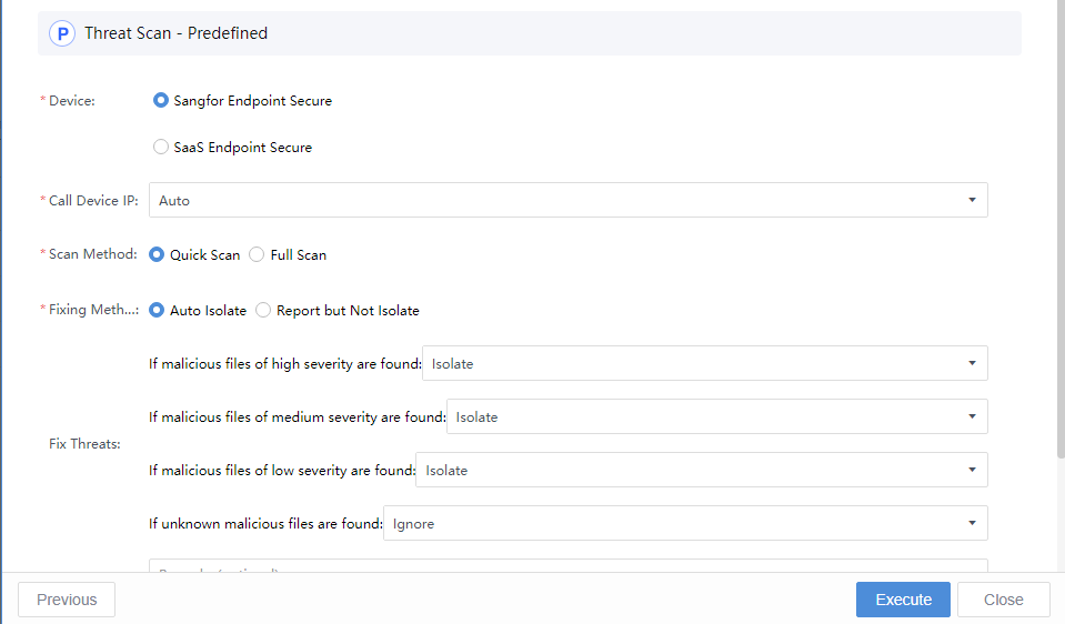 Response: Provides fundamental response capabilities, including process, DNS, IP address blocking, and file and host isolation. Integrate Endpoint Secure with other network security products, offering capabilities such as closed-loop threat fix, threat investigation, attack tracing, defense enhancement, and threat hunting.
