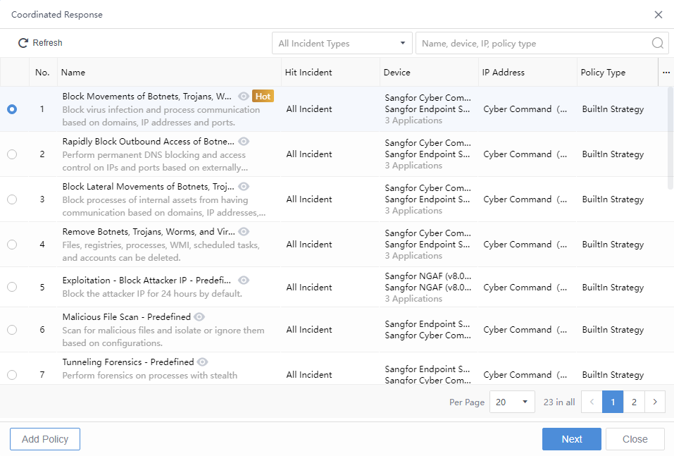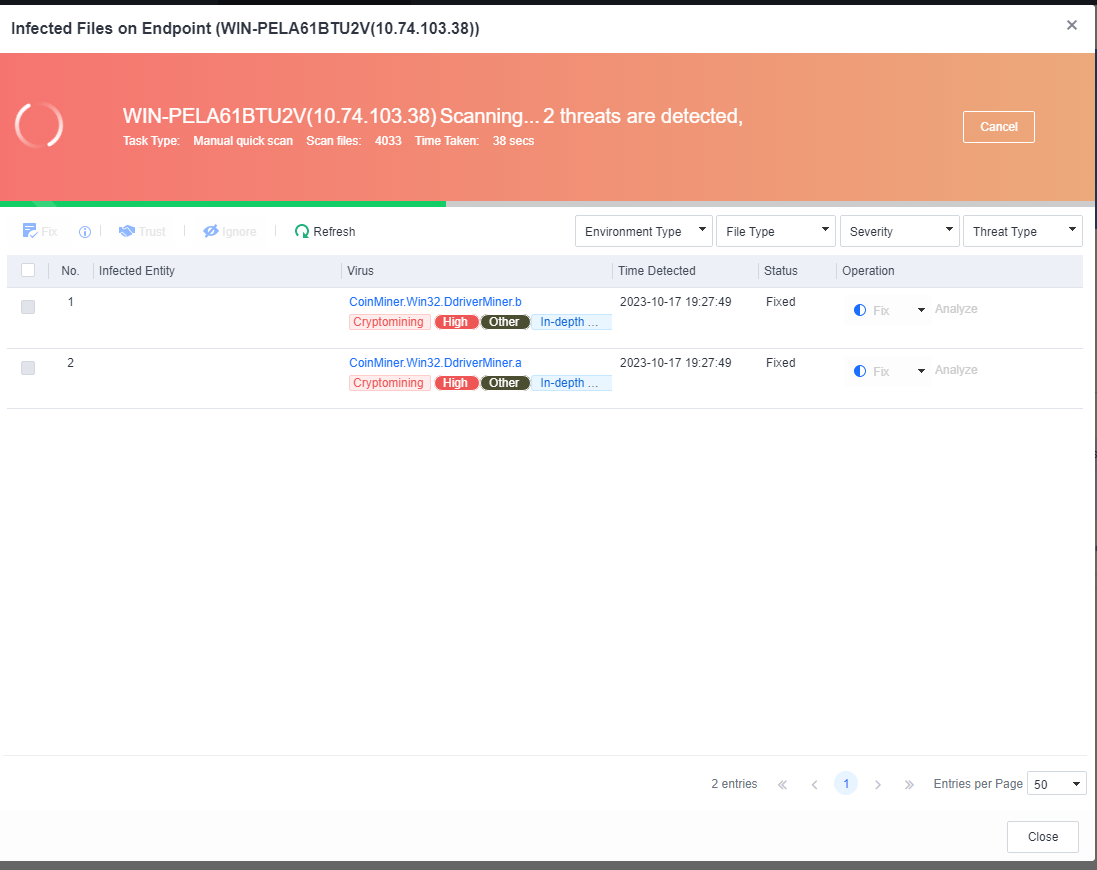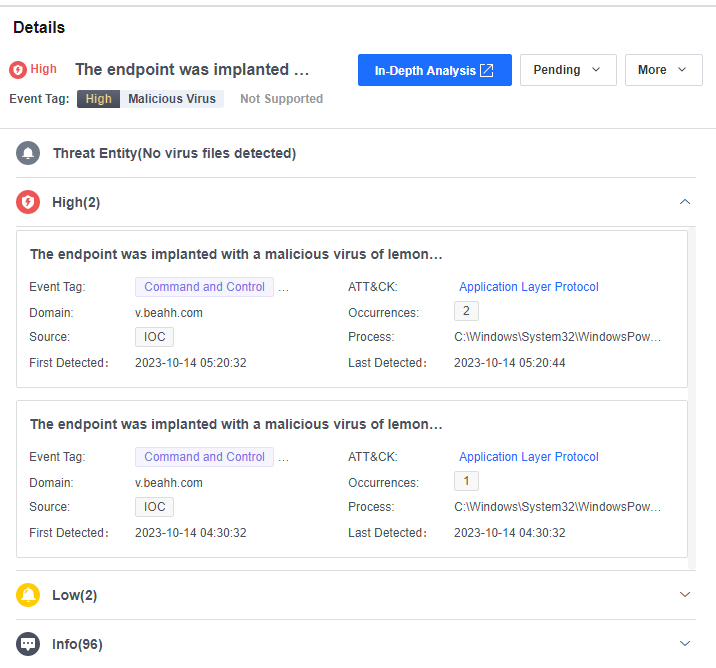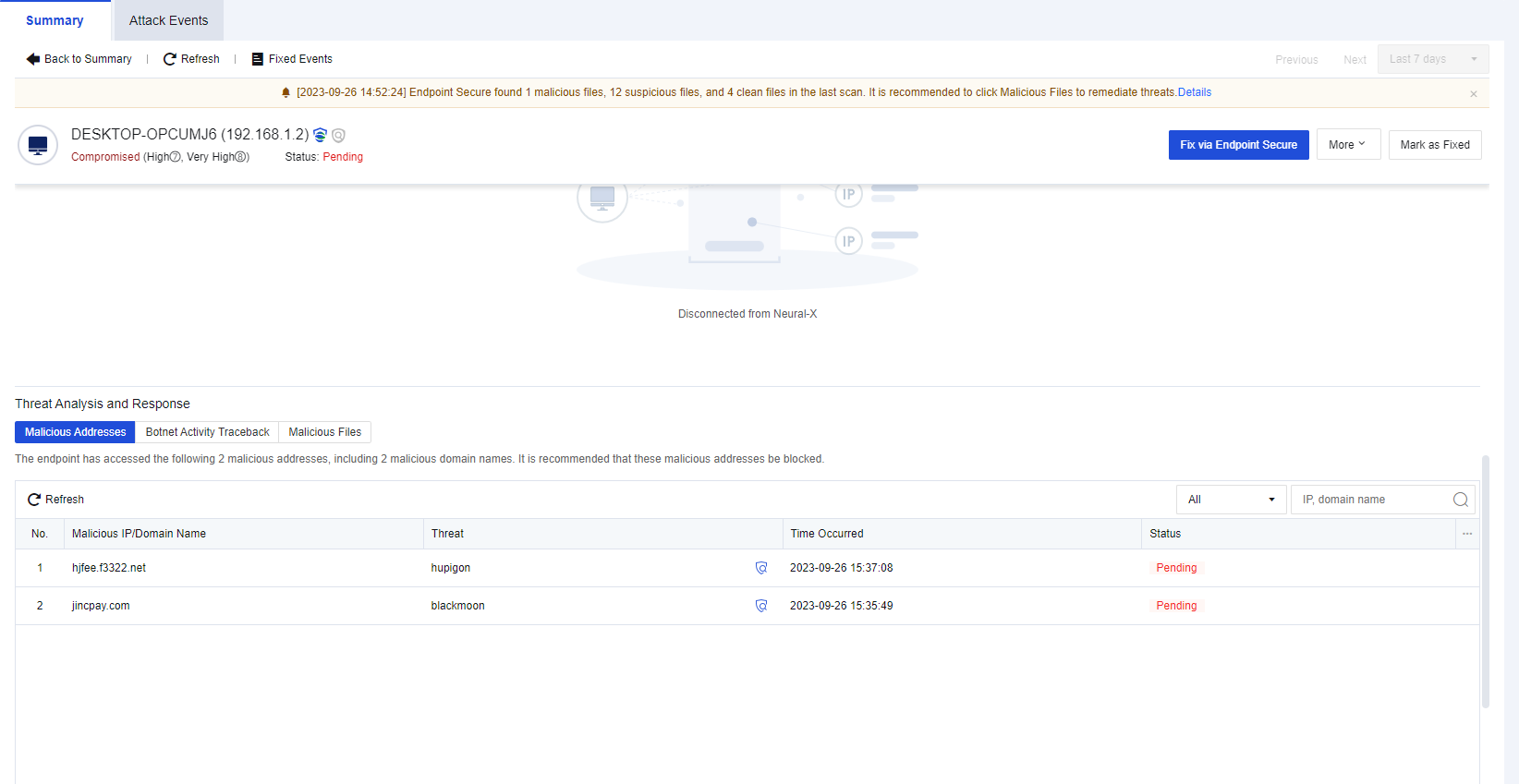 Response: Provides fundamental response capabilities, including process, DNS, IP address blocking, and file and host isolation. Integrate Endpoint Secure with other network security products, offering capabilities such as closed-loop threat fix, threat investigation, attack tracing, defense enhancement, and threat hunting.