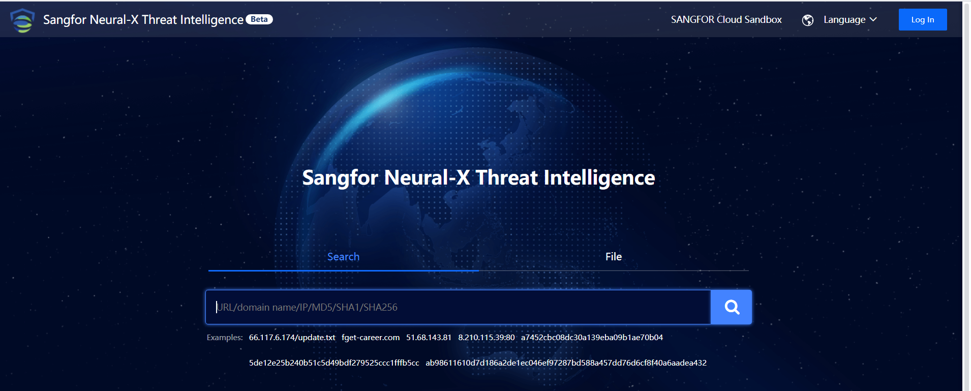 | Endpoint Secure Manager | Cloud server | Cloud-Based Engine | https://analysis.sangfor.com |