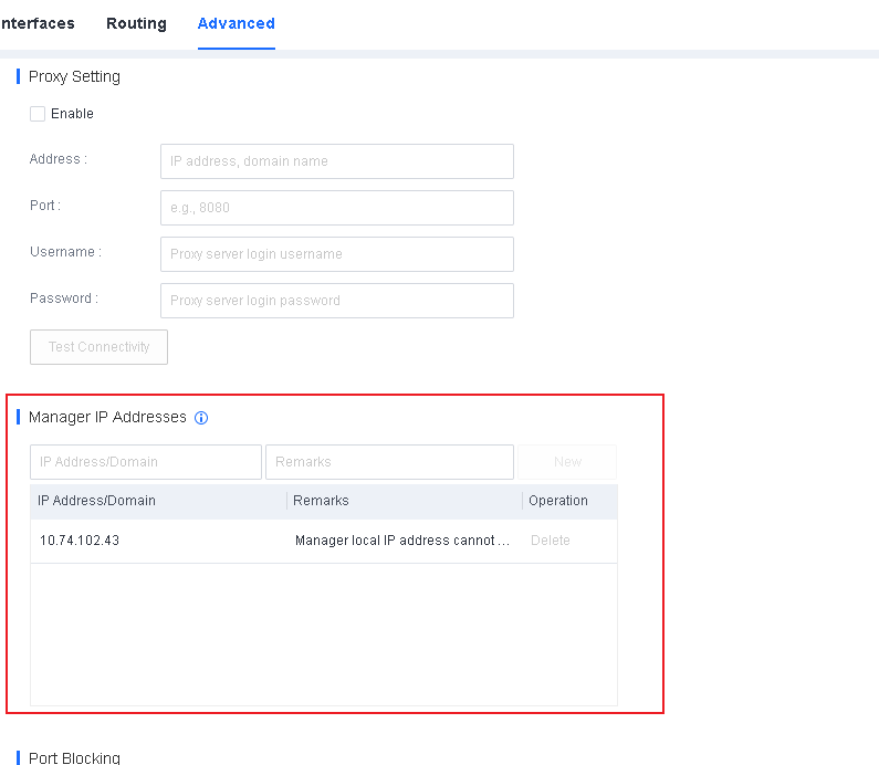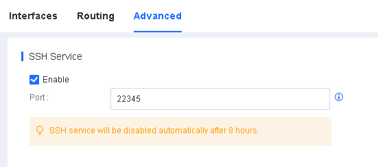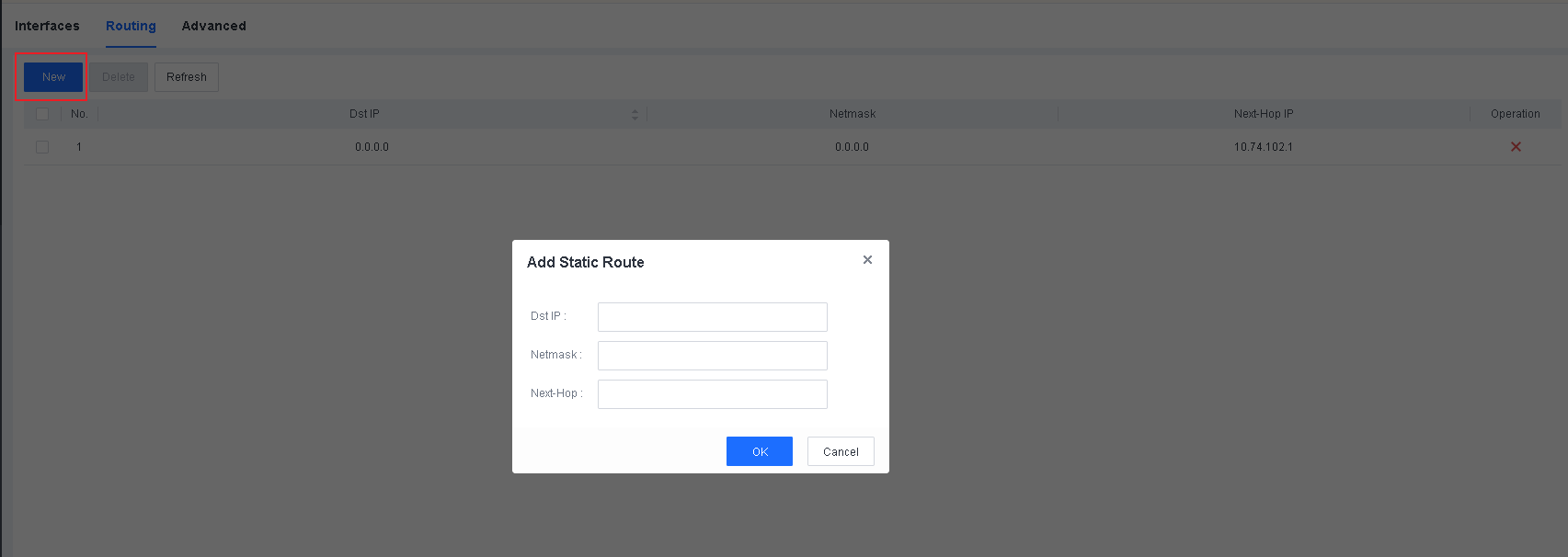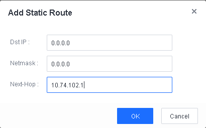 Navigate to System > System > Network > Routing and configure the routing, as shown in the following figure.