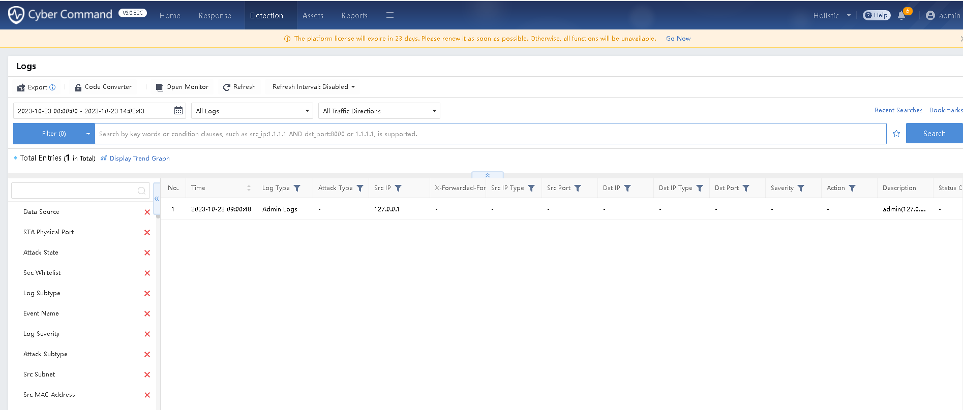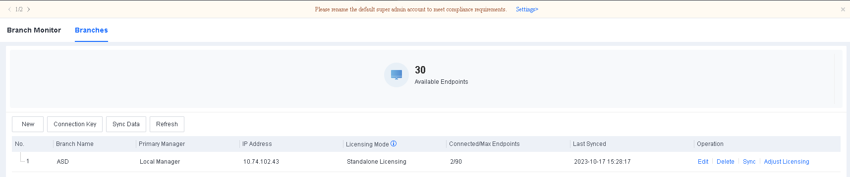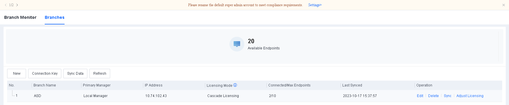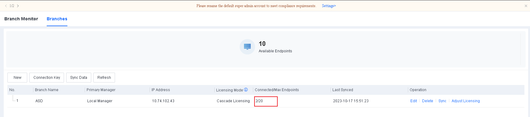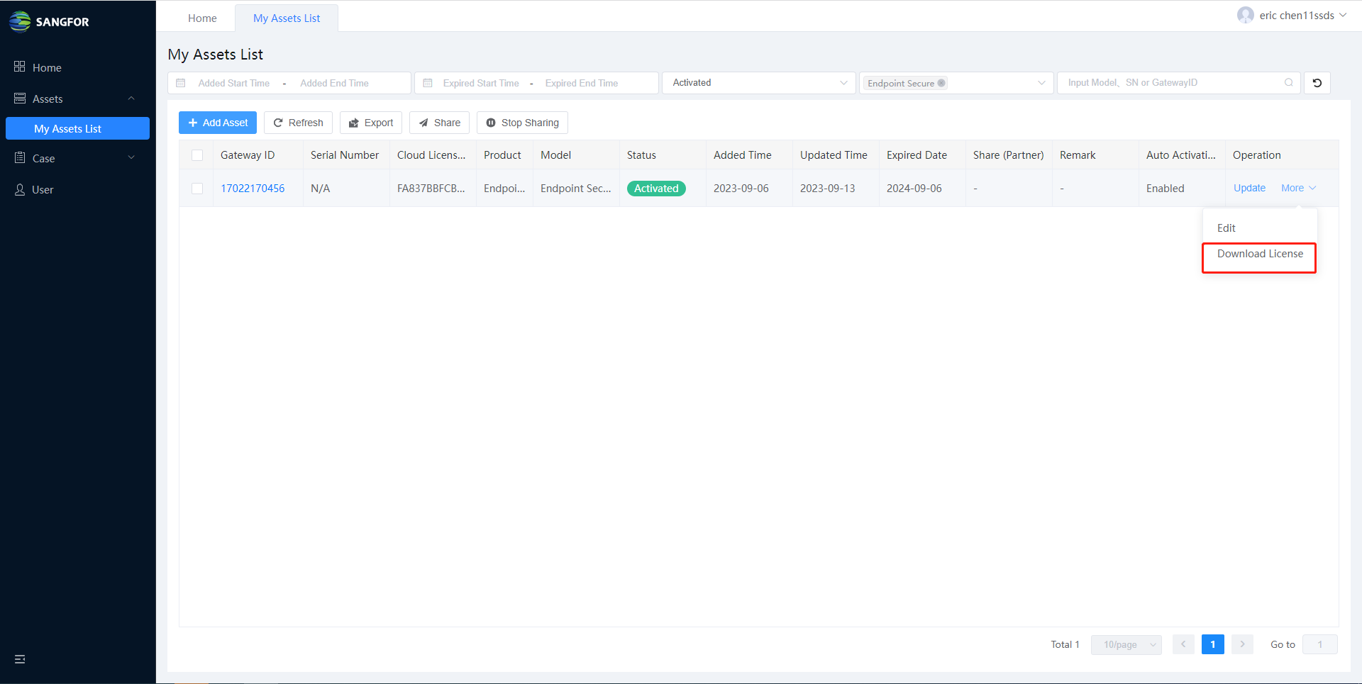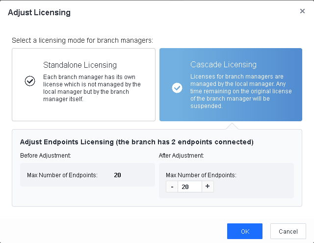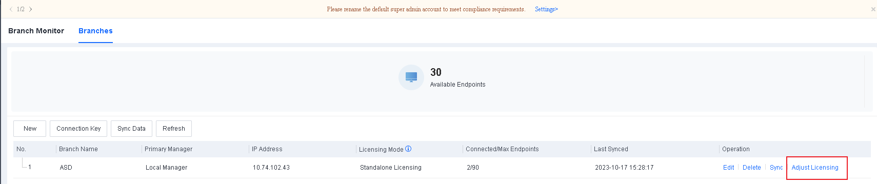 Go to System > Licensing and check whether the license is valid, as shown in the following figure. If the license has expired, Endpoint Secure cannot be upgraded.