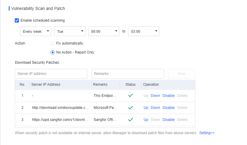 | Endpoint Secure Manager | Cloud server | Patches | https://upd.sangfor.com |