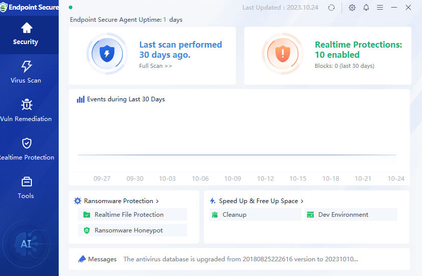 By default, if Endpoint Secure Manager is connected to the Internet, the database is automatically updated online.