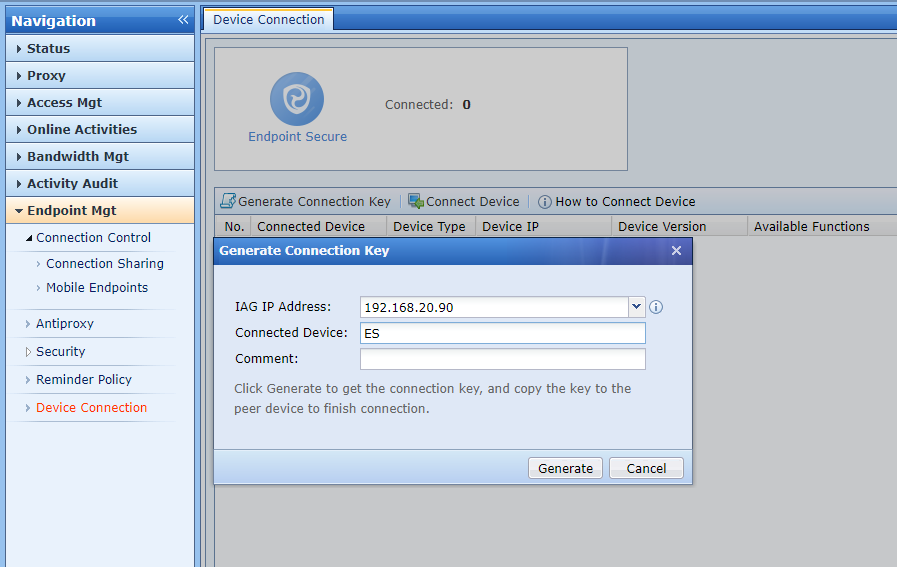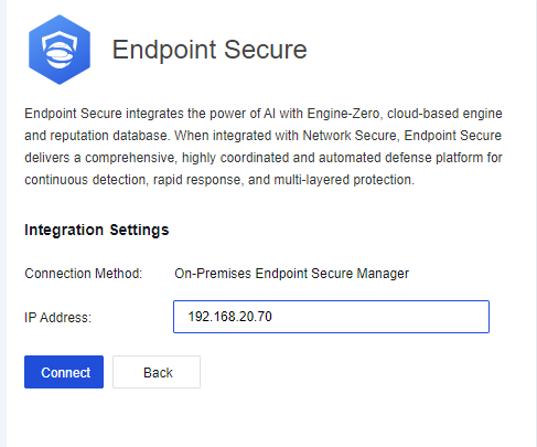 Note: The default IP address of the management interface of Endpoint Secure Manager is 10.251.251.251/24.