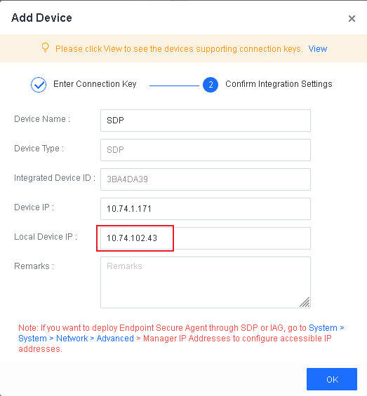 - This alert indicates that the installer file has been renamed. You can enter the IP address of Endpoint Secure Manager and port number 443 in the text boxes to continue, or you can re-download the installer. Note that you cannot rename the installer.