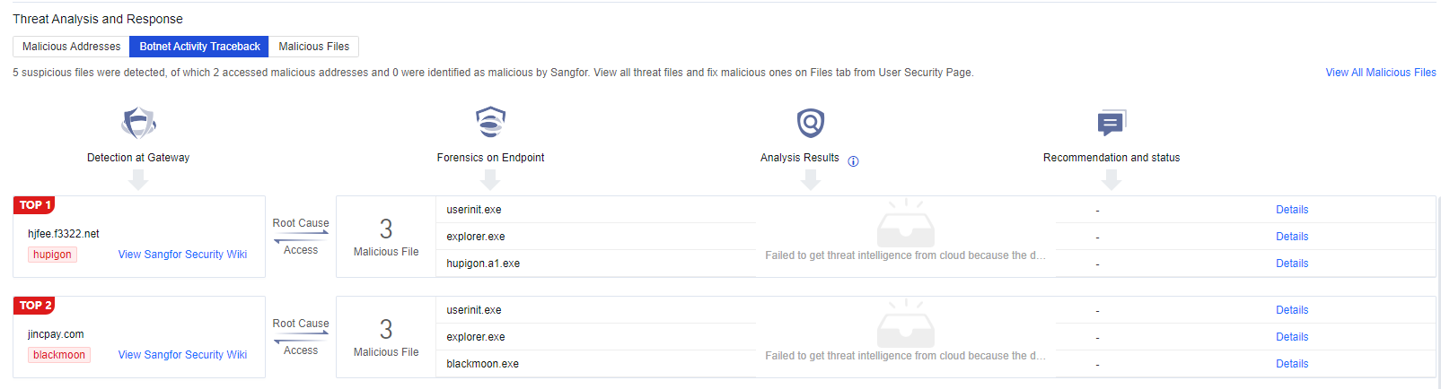 | Endpoint Secure Manager | Cloud server | IOC rule upgrade | https://intelligence.sangfor.com.cn |