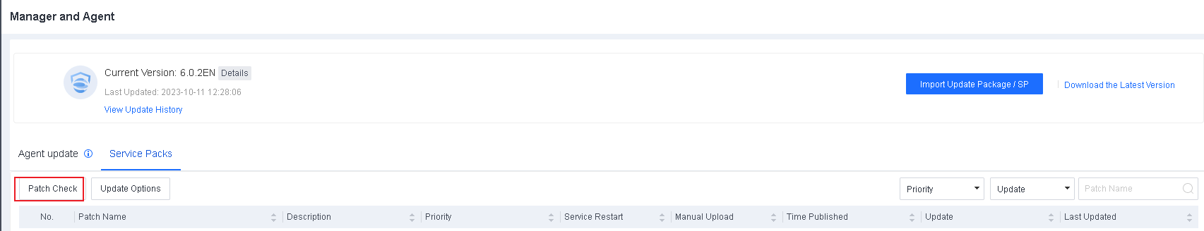 Go to System > System Updates > Manager and Agent > Service Packs, and click Patch Check.