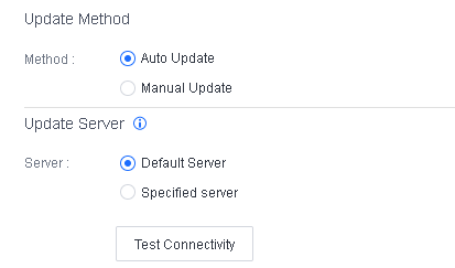 Go to System > System Updates > Manager and Agent > Service Packs. Click Update Options and specify the update method and upgrade server, as shown in the following figure.