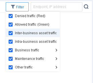 Go to Risk Assessment > Micro-Segmentation > Traffic Statistics, and make sure that the provided options in Filter are selected, as shown in the following figure.