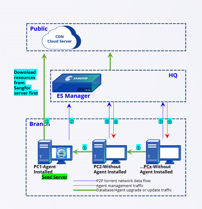 This feature avoids single-channel file download from Endpoint Secure Manager only, which causes slow installation and upgrade and excessive bandwidth usage.