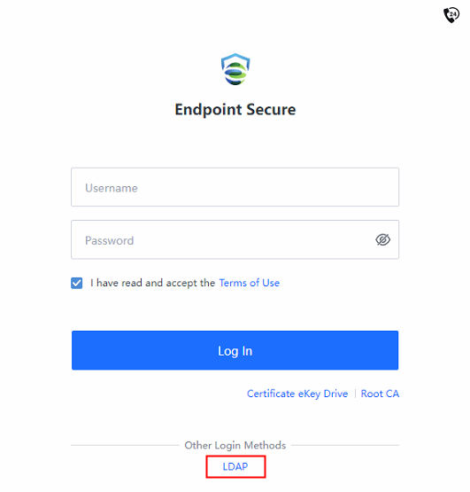 d) Go to the login page of Endpoint Secure Manager, and click the LDAP under Other Login Methods.