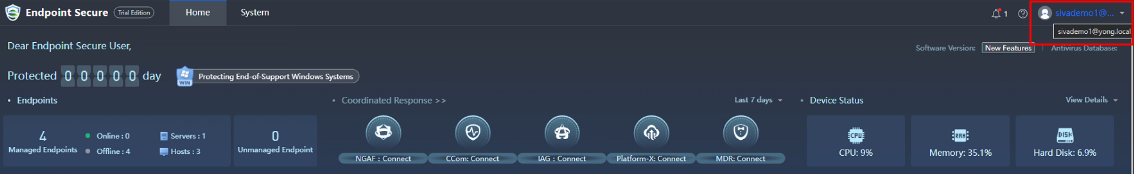 Able to log in to Endpoint Secure Manager.
