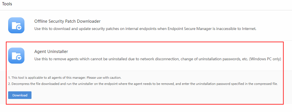 - Agent Uninstaller: Provides solutions for agent uninstallation in terminal offline scenarios.