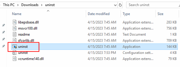 b) Place the downloaded tools on the Windows terminal. Then, extract the file and run uninst.exe.
