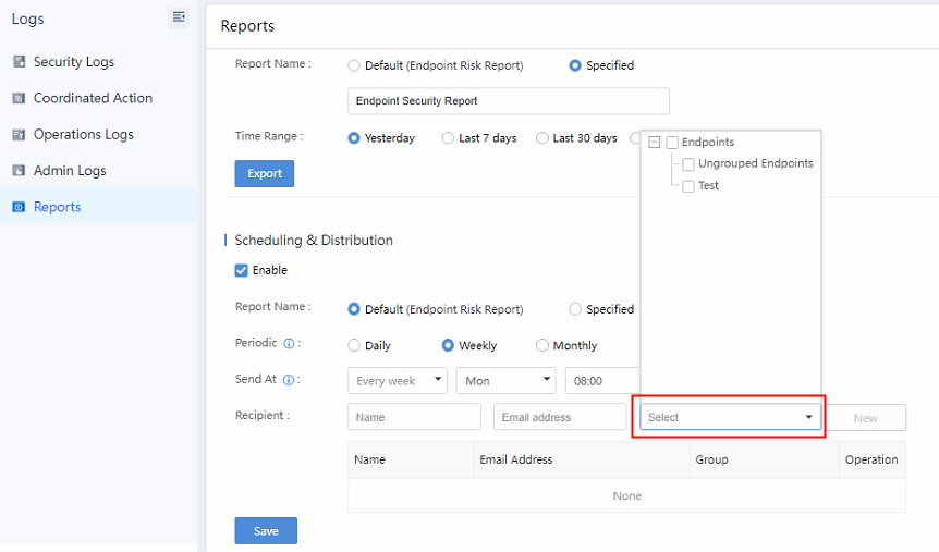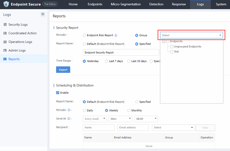 If there are many endpoints, it is recommended to set some endpoints to upgrade first before upgrading the Endpoint Secure Manager. If no issue is found after some endpoints upgrades, you may upgrade all endpoints, as shown below: