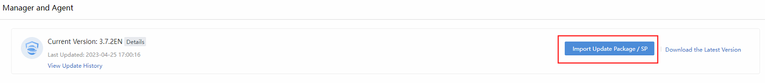 Step 1. Navigate to System > System Updates > Manager and Agent and click Import Update Package / SP to import an update package.