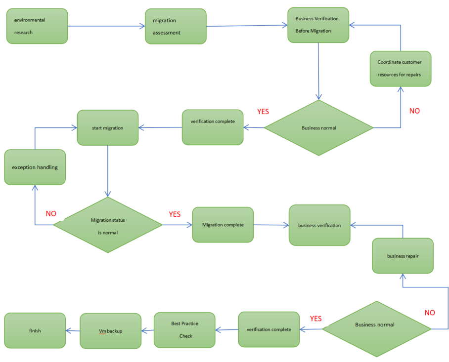 | Business Verification Failed | Troubleshoot | customer | / | If the business fails to start after the migration, coordinate the business side to troubleshoot the problem. |