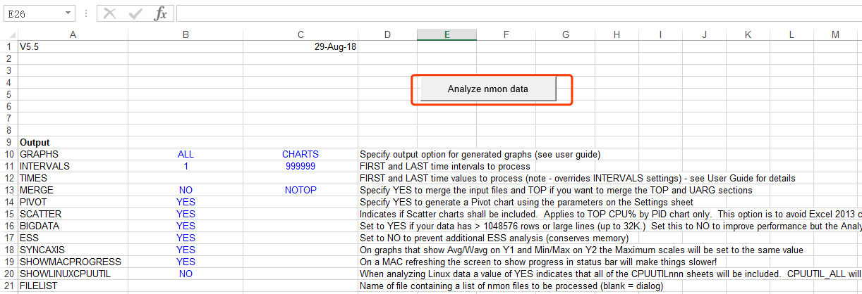 - Download nmon Analyser to analyze the performance data collected by nmon visually. Download link: