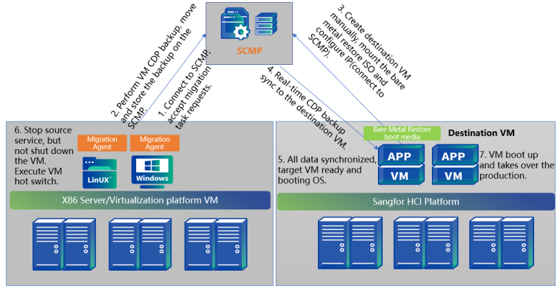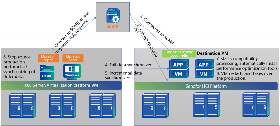 For detailed operations of each migration method, please refer to Sangfor SCMT(Sangfor Cloud Management Tool) User Manual.