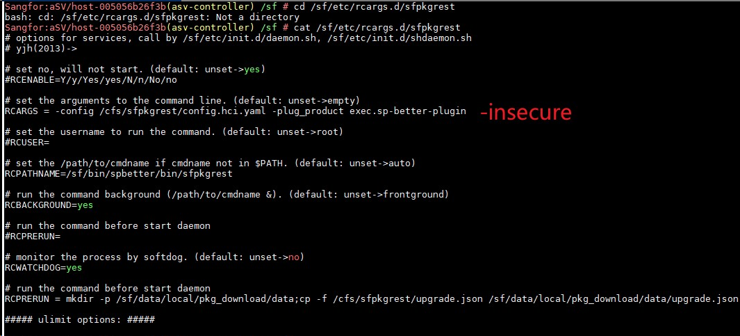 Command: vi /sf/etc/rcargs.d/sfpkgrest