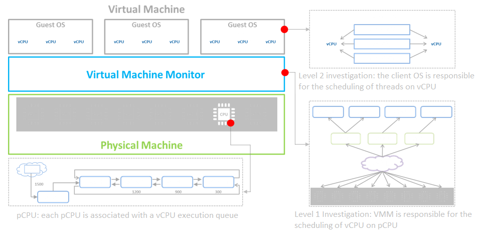 Based on hardware-assisted virtualization technology, aSV uses VMM to realize the virtualization of x86 architecture and divides a single physical CPU into multiple vCPU. The virtual machine only sees the vCPU presented by VMM and does not directly perceive the physical CPU. The user operating system is responsible for the level 2 schedule, the scheduling of threads or processes on vCPU. The virtual machine monitor is responsible for the level 1 schedule and the scheduling of vCPU on the physical processing unit.