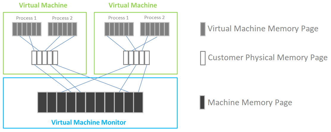 aSV completes memory virtualization based on page table virtualization technology. VMM is responsible for page memory management, maintaining the mapping relationship from virtual address to machine address, virtualizing physical memory into the virtual machine, and using virtual memory.