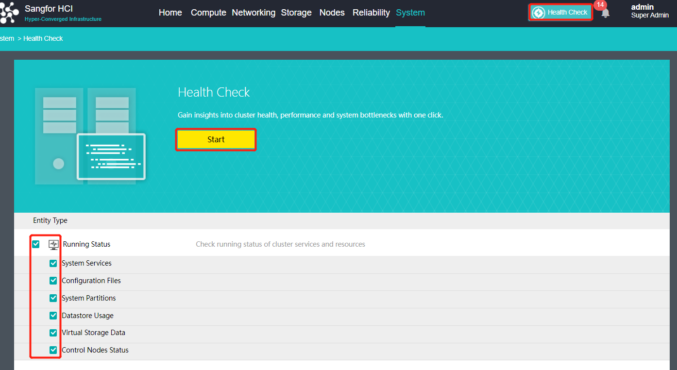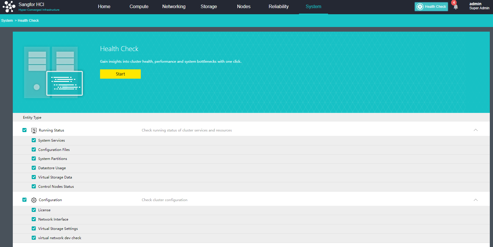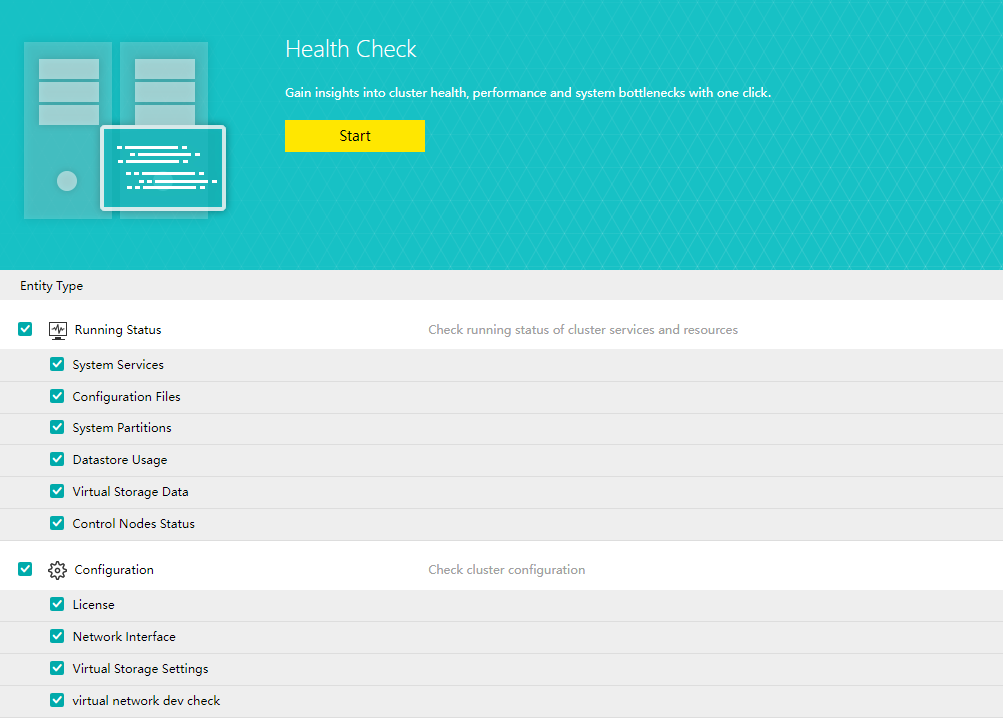 Health Check can identify the system hardware, configuration, and system operation, quickly locate the problem location (hardware, platform, and business), conduct the layered inspection, and provide detailed fault solutions.
