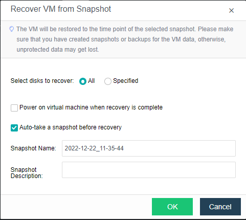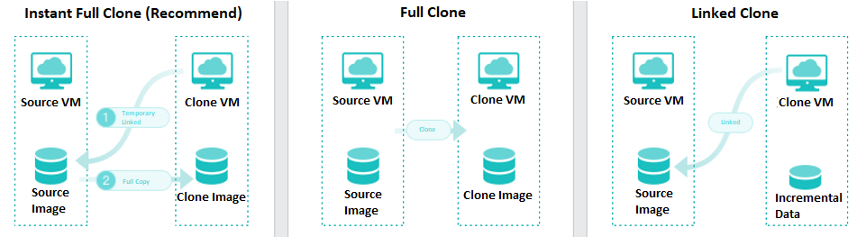 - Redirect on write (ROW) is used to realize the snapshot, and the virtual machine’s performance will not be affected after the snapshot.