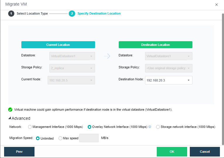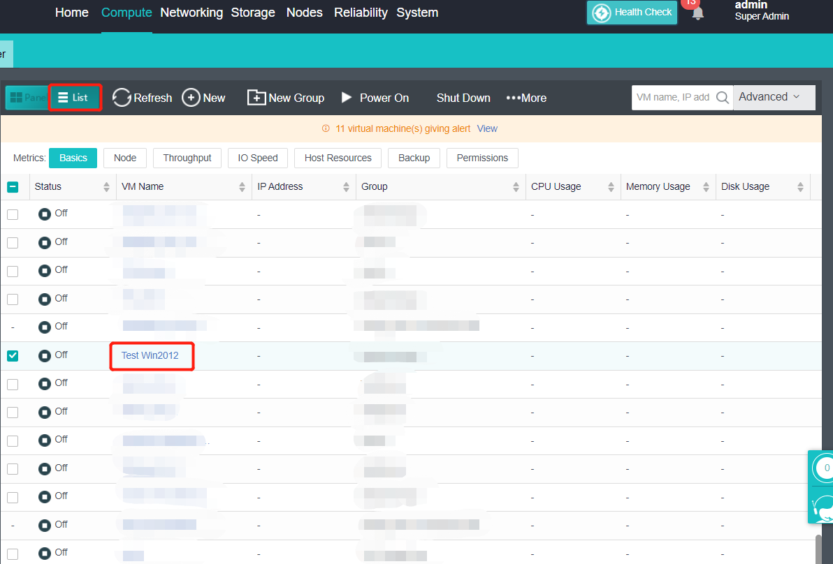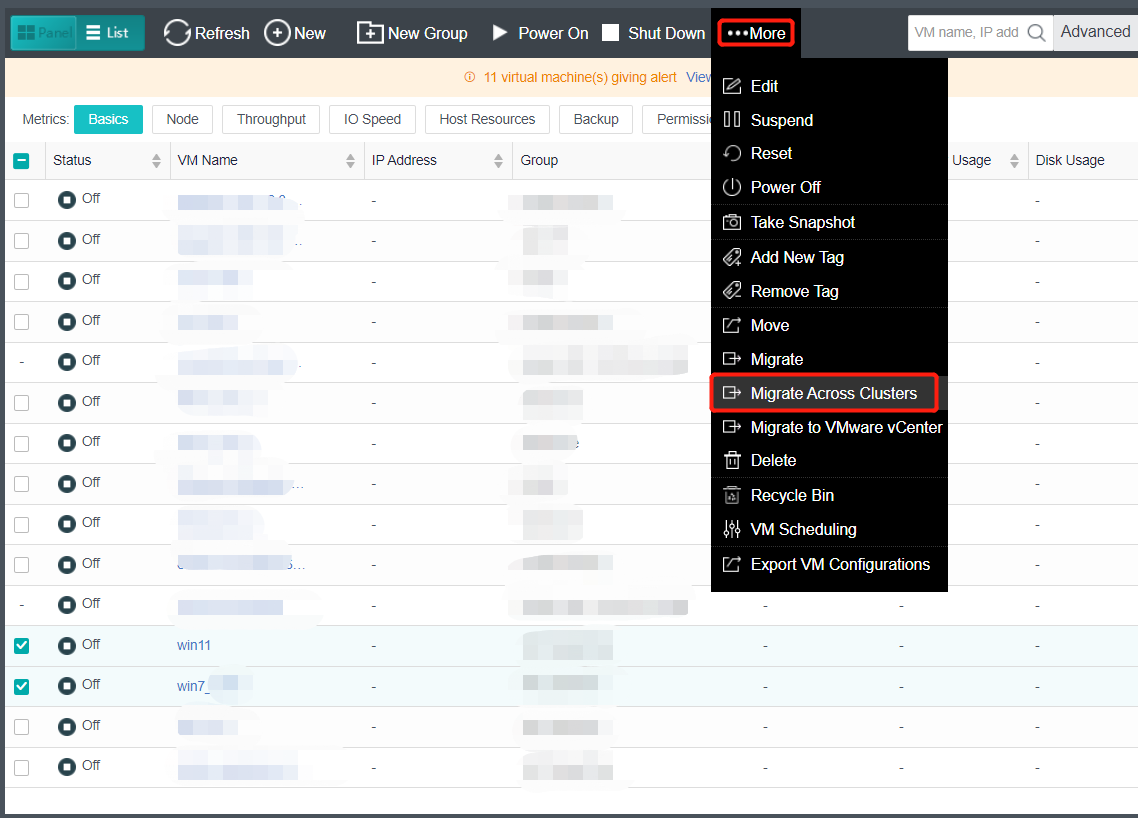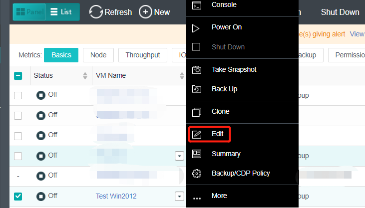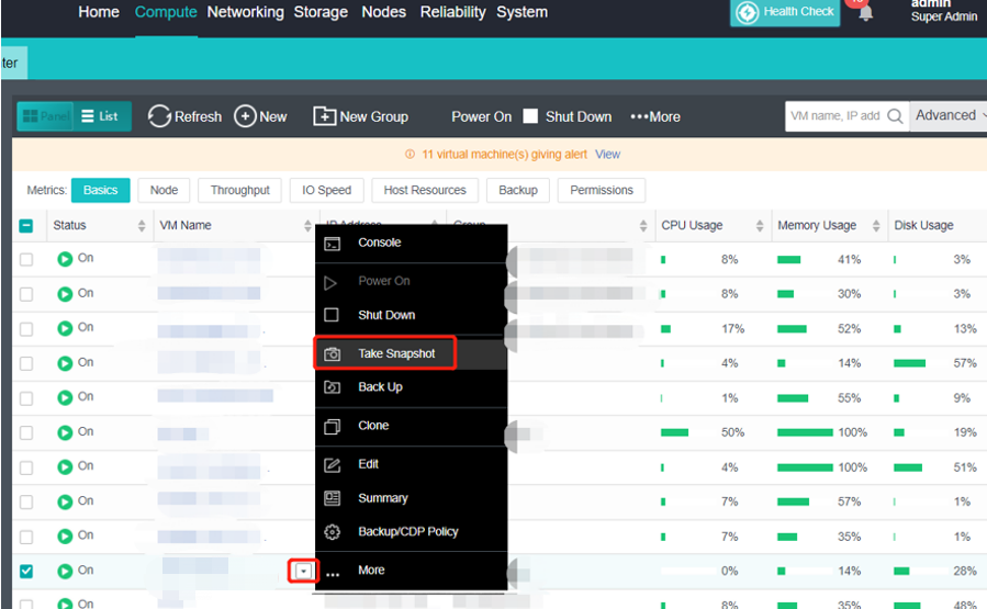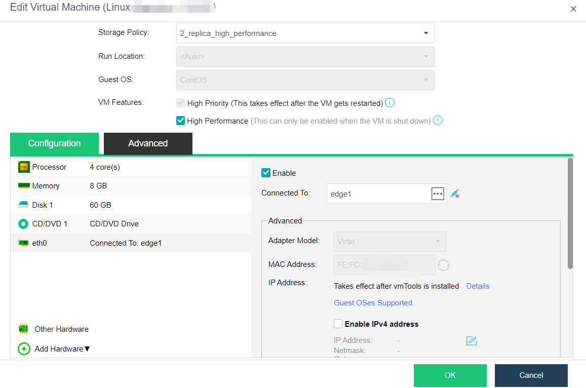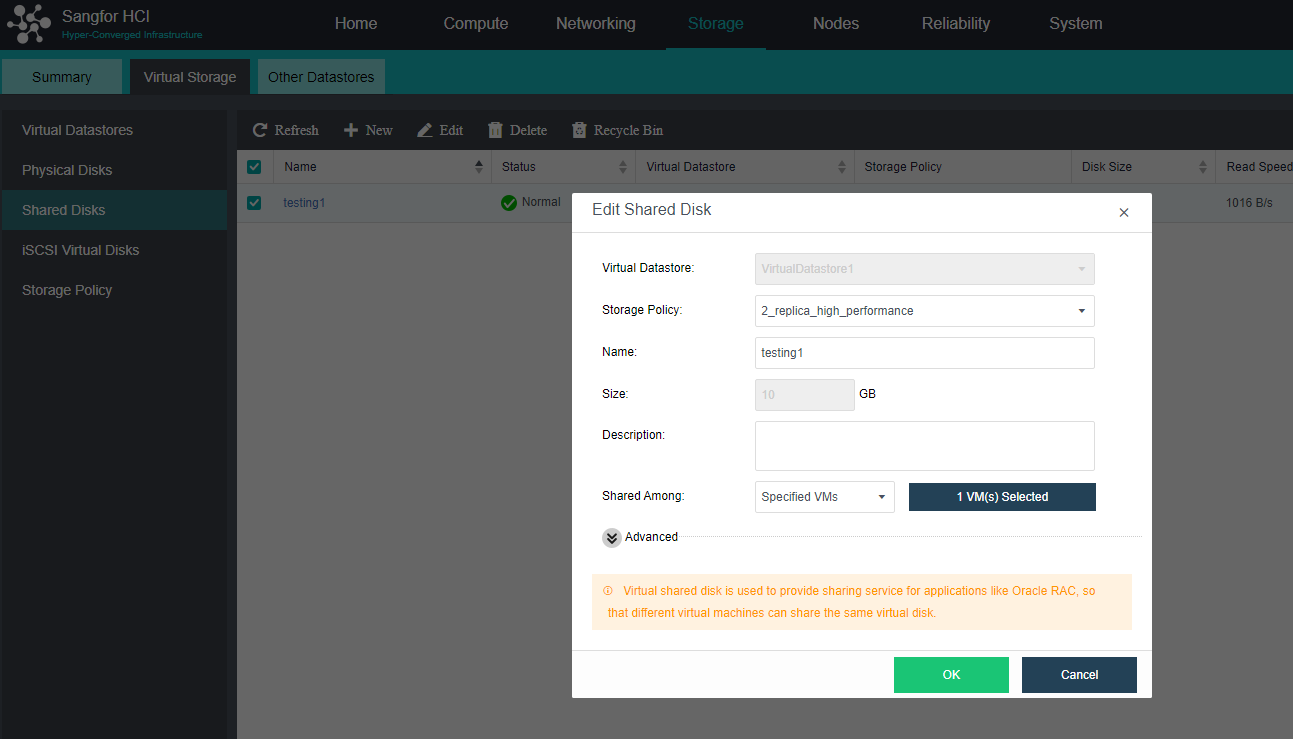 - At present, the platform has restricted the change of storage communication. All virtual machines must be shut down to make changes to prevent the virtual machines from running abnormally.