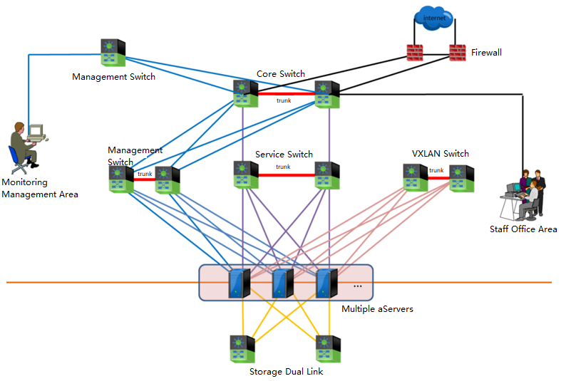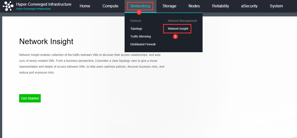 aNET is a network virtualization component in the HCI architecture solution. It uses Overlay to build the second tier and realize tenant isolation between business systems. Through NFV, all functional network resources (including basic routing switching, security, and application delivery) required in the network can be allocated and flexibly scheduled on demand to realize network virtualization in HCI architecture.