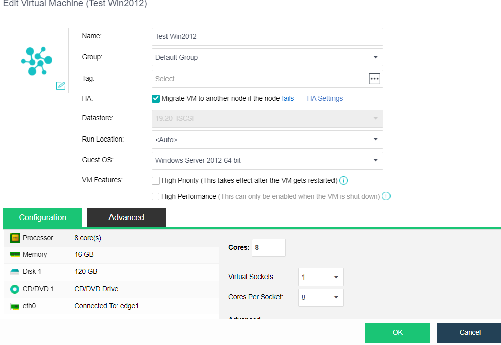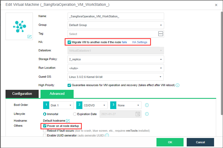- Node failure HA means that when the node where the virtual machine is located has an accident (node power outage, interface drop, etc.), a node with sufficient resources will be selected to restart the virtual machine, which significantly reduces the service interruption time.