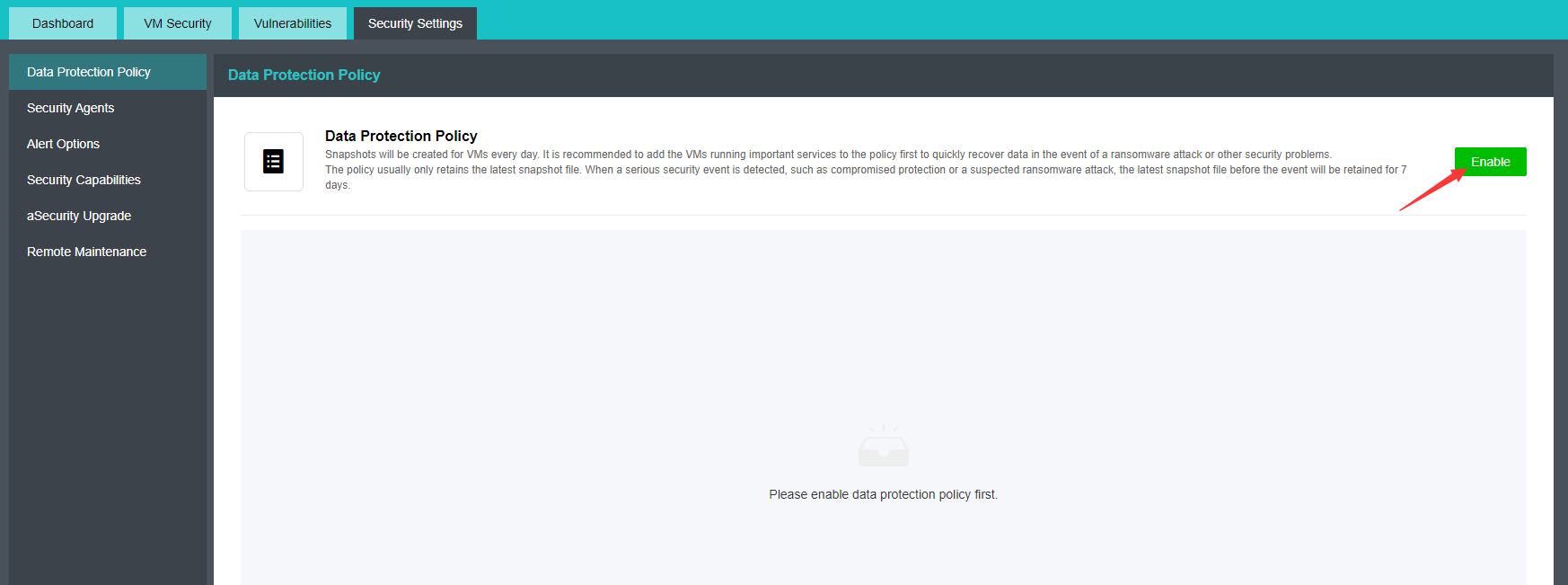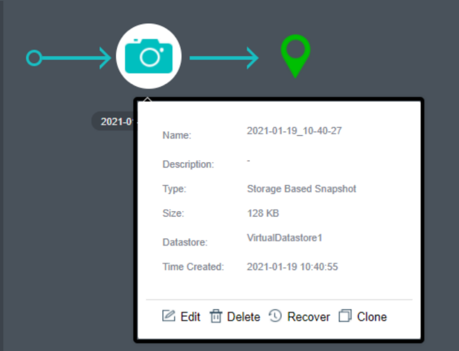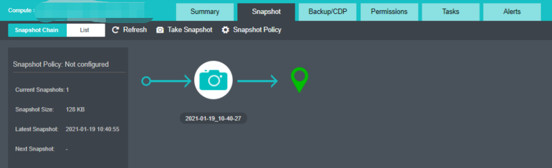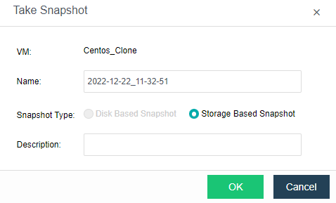 Supports the storage snapshot function. When creating a virtual machine snapshot, the system will set the source virtual disk as read-only and generate a corresponding number of new disk files (i.e., snapshot space).