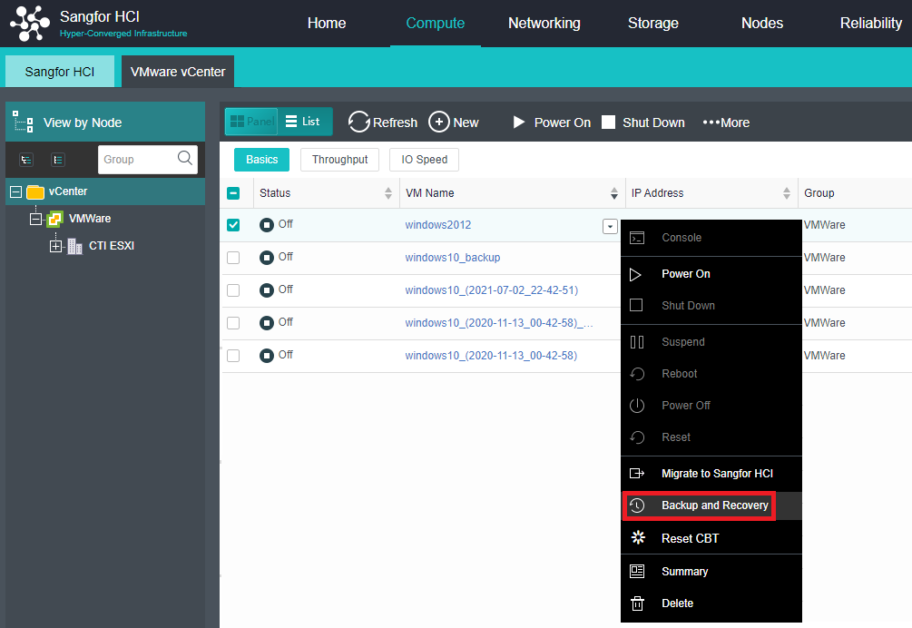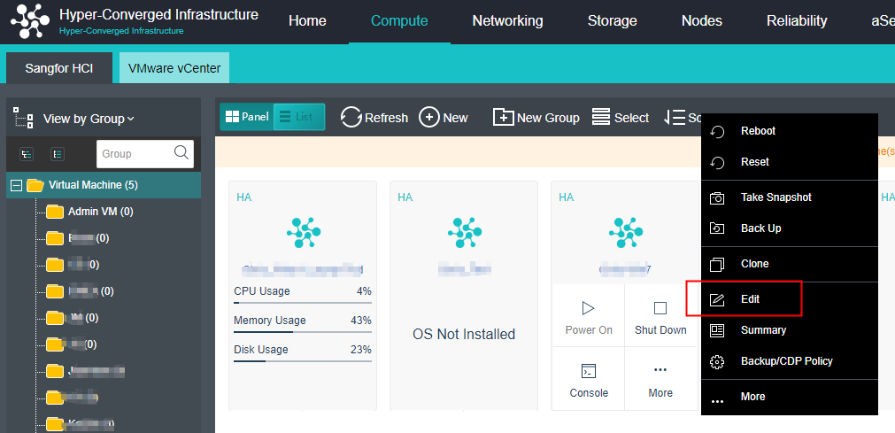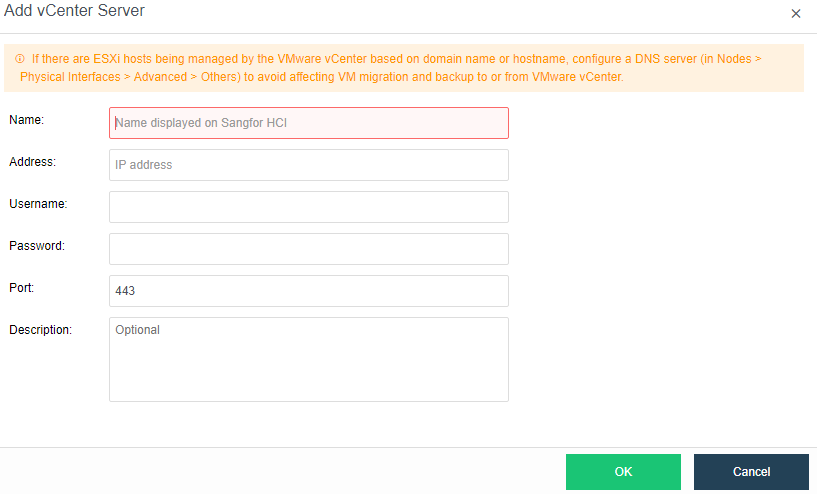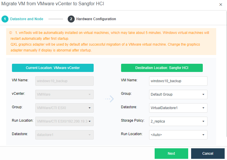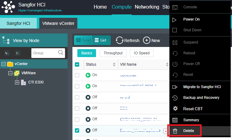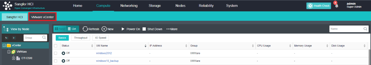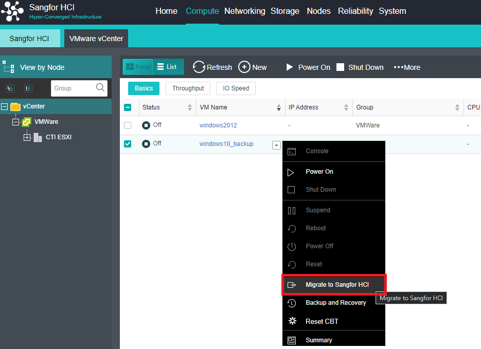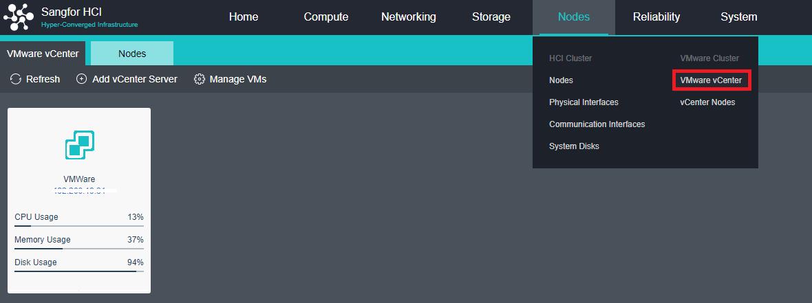 HCI can add VMware vCenter and manage it to realize centralized management of dual platforms. Virtual machines between VMware vCenter and HCI can support two-way migration.