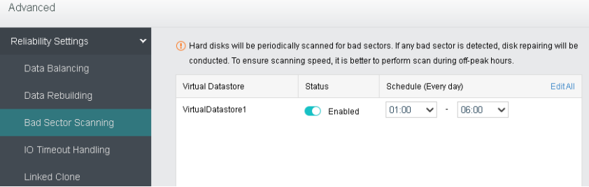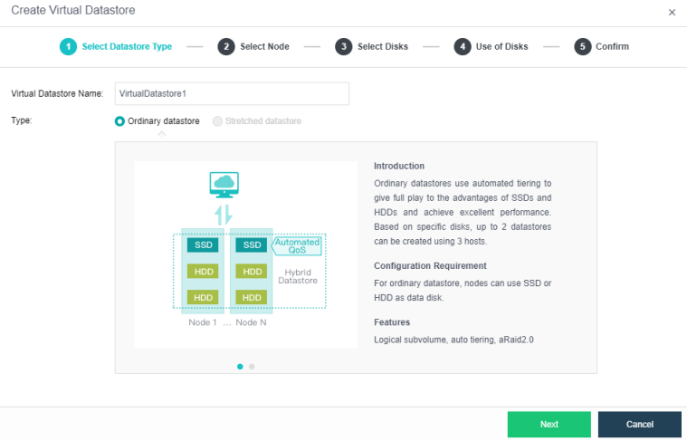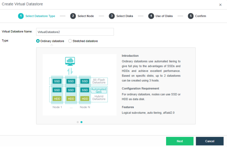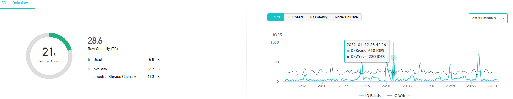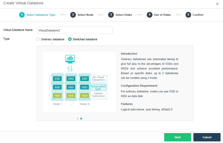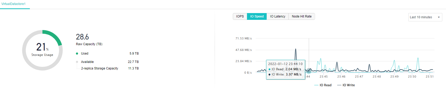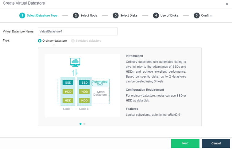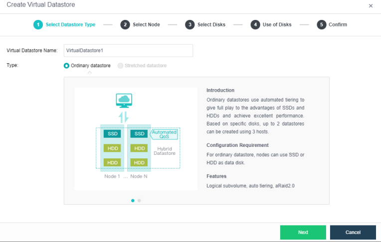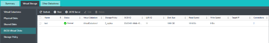 aSAN divides a single qcow2 file into several smaller pieces according to a fixed unit size through data fragmentation technology. Make data more evenly distributed in virtual datastores and data management more flexible.