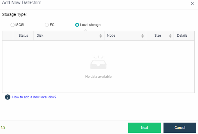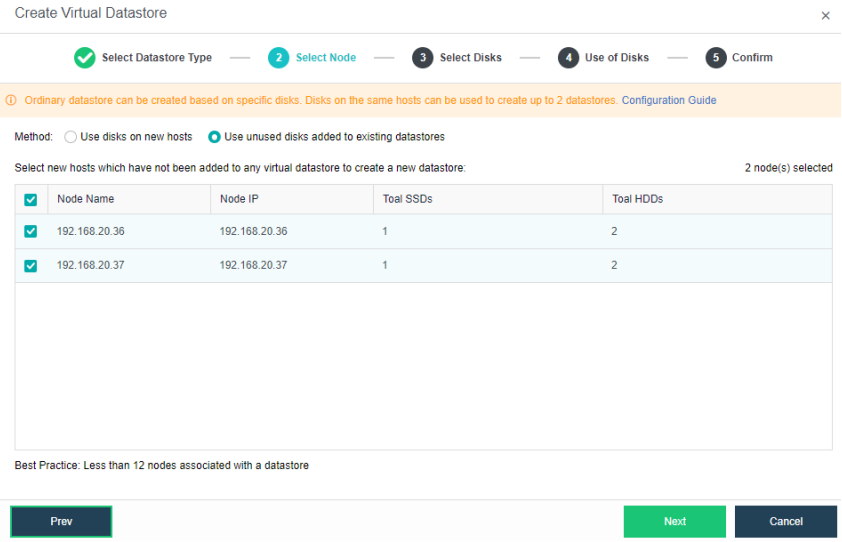 Format the server disk or external storage disk that has joined the Sangfor HCI cluster.