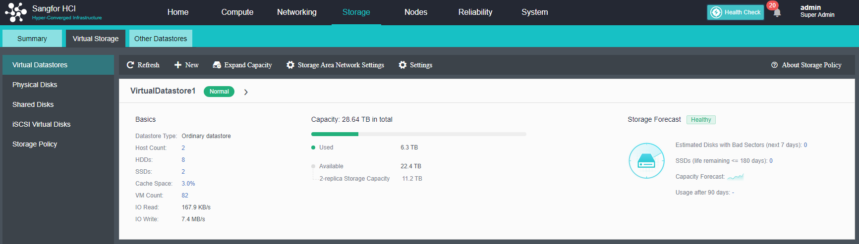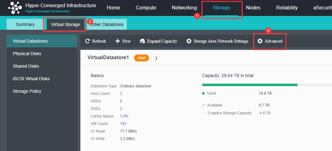 It also supports 2 replica and 3 replica policies. For virtual machines carrying important business systems, users can choose to configure three replica policies to further improve the reliability of data. Support the conversion between 2 replica virtual machines and three replica virtual machines to achieve the best balance between high reliability and high performance.