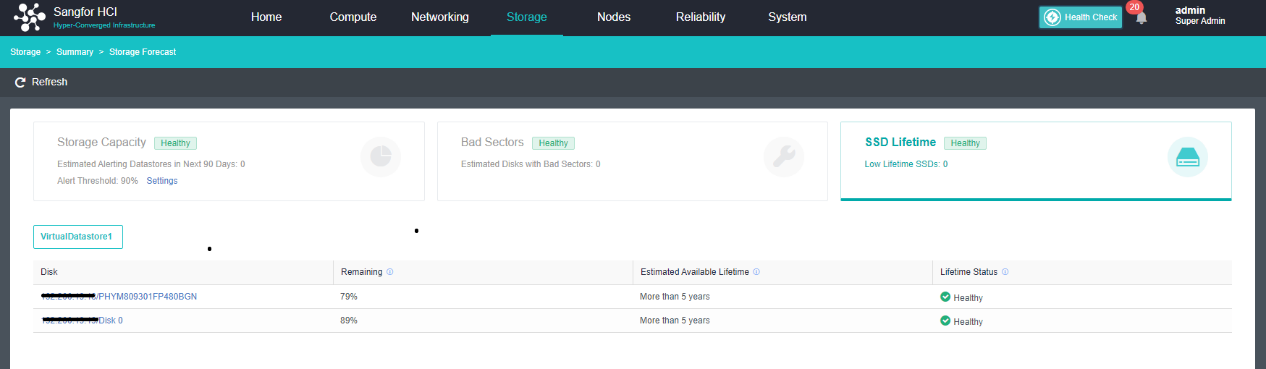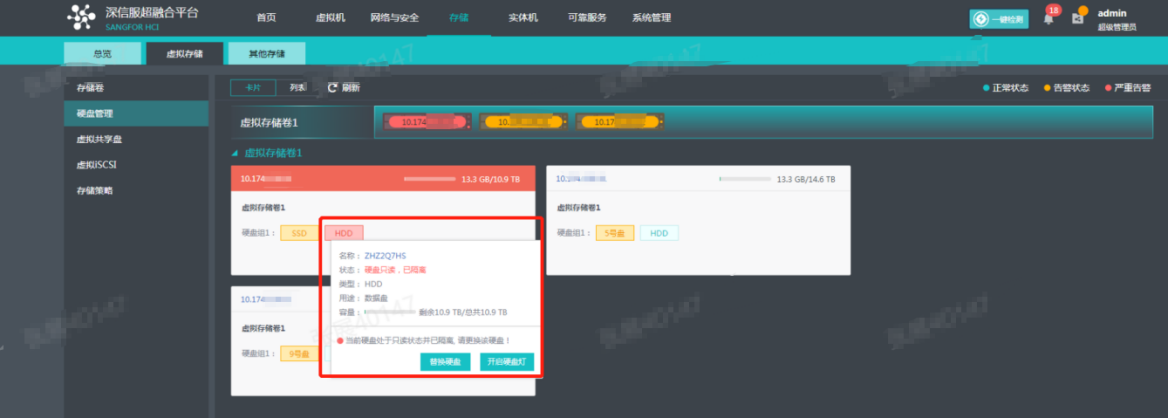 Feel free to plug and unplug the disks that have been added to the Sangfor HCI server.