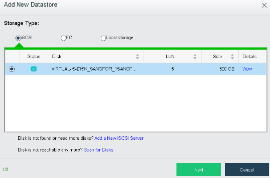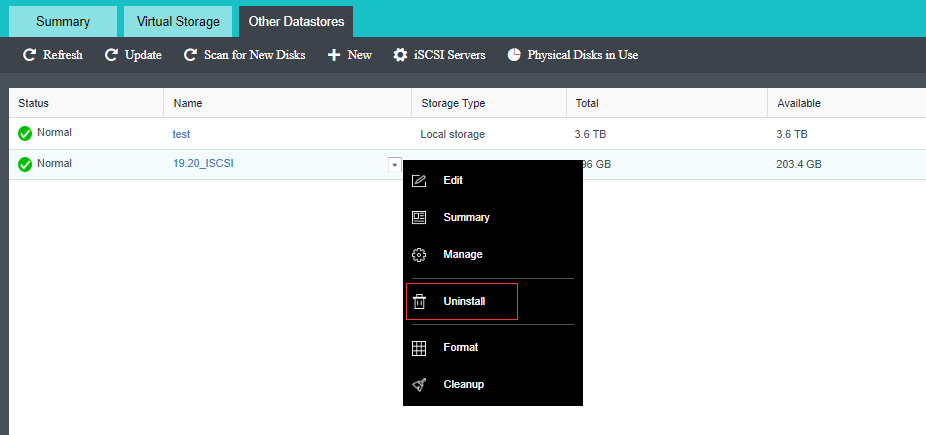 For the running business virtual machine, and the virtual machine’s datastore is on the iSCSI server connected to HCI, perform the Rescan or Discover Target operation.