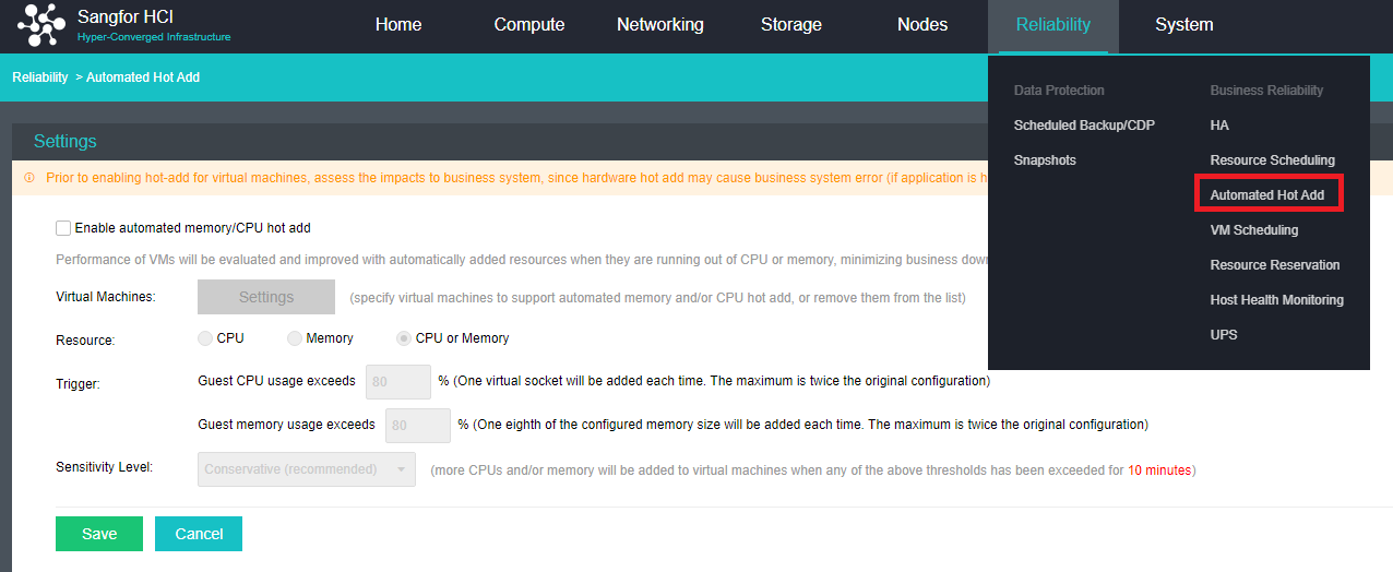 The automation strategy provided by the automated hot addition function can quickly respond to the growth and change of the business state. Dynamically expand the virtual machine’s CPU and memory resources, ensuring business continuity and solving the agile operation and maintenance problems caused by user business growth.