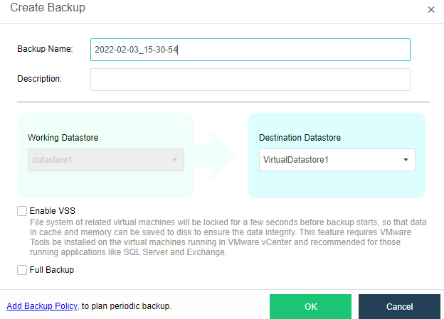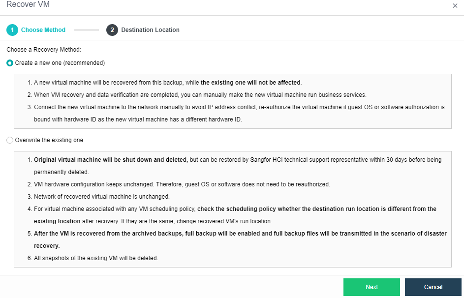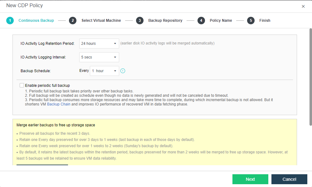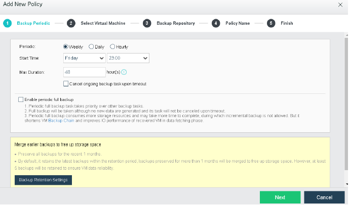 - The virtual machine backup mode supports full backup and incremental backup of virtual machines. The first virtual machine backup of the user is the full backup of the virtual machine, and other backups within the backup retention period are incremental backups.