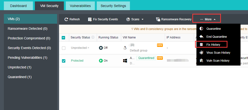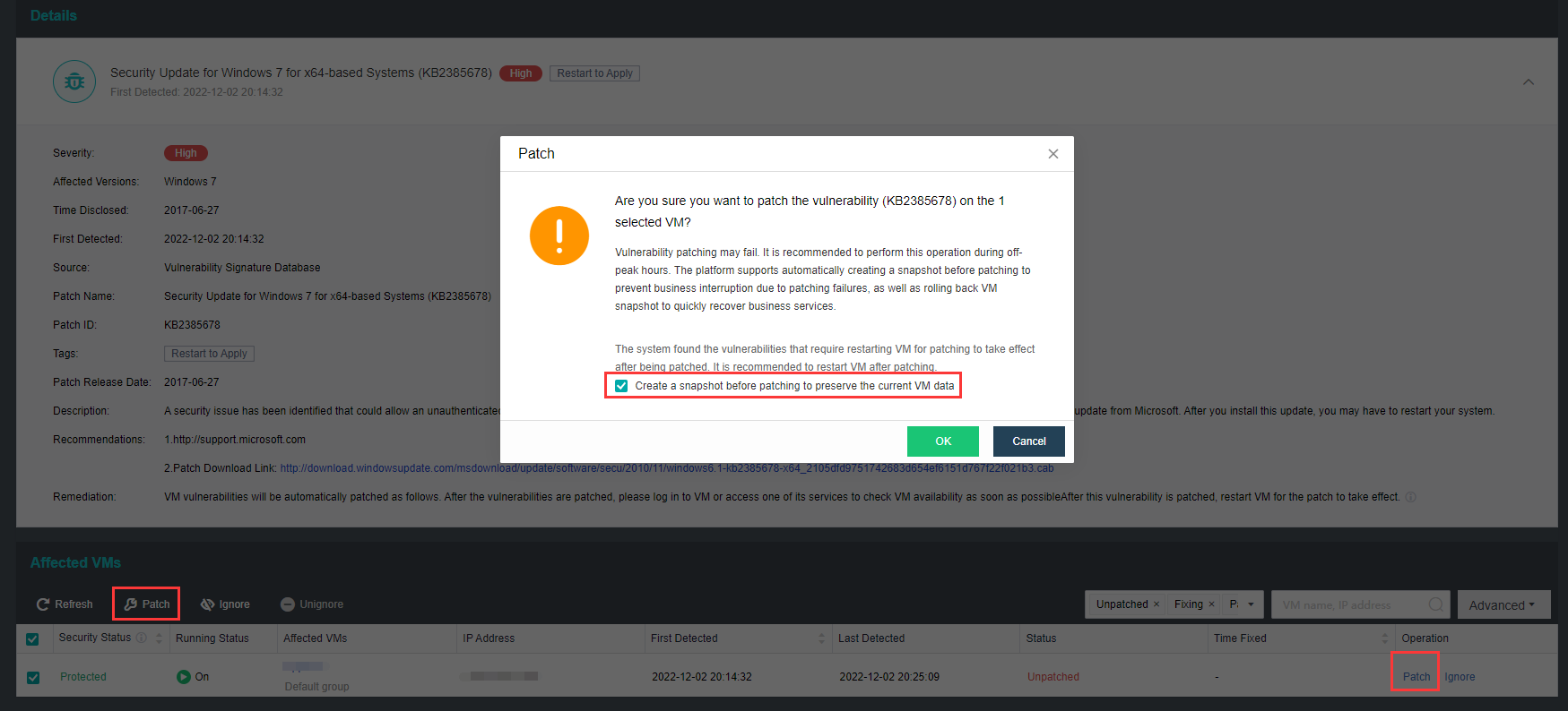 - When the virtual machine in the consistency group fails, the virtual machine in the group can be rolled back to a consistent state by using the consistency group snapshot.