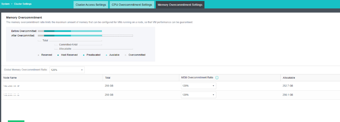 By isolating the memory area of each module, the system will not be suspended or shut down due to memory preemption to improve the platform’s reliability. At the same time, it supports the over allocation of virtual machine CPU and memory, and the actual usage can exceed the physical limit. Give priority to ensuring the memory usage of important virtual machines and improving the CPU and memory usage.